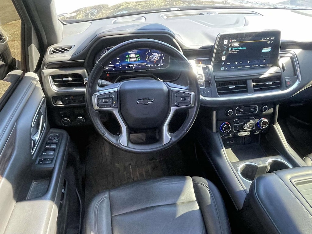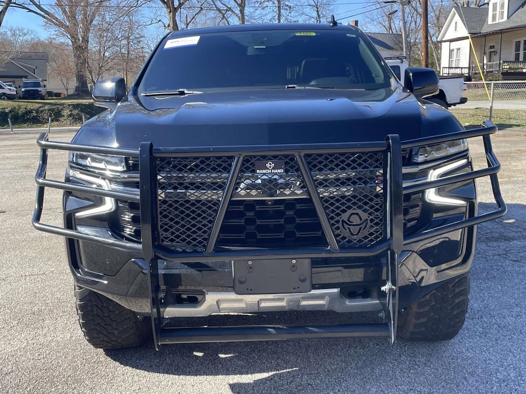 CERTIFIED!! One owner 2022 Chevrolet Tahoe Z71 in Black is equipped with 4WD, leveled suspension, grill guard, all terrain tires, 10-Speed Automatic with Overdrive EcoTec3 5.3L V8, ** Apple Car Play / Android Auto, ** Panoramic Moonroof, ** Leather, ** Quad Capt Chairs, ** 3rd Row Seat, Trailering Package, Air Ride Adaptive Suspension, Driver Alert Package, Electronic Limited-Slip Differential, Extra Capacity Cooling System, HD Surround Vision, Heated Steering Wheel, Integrated Trailer Brake Controller, Lane Change Alert w/Side Blind Zone Alert, Luxury Package, Memory Settings, Off-Road Capability Package, Outside Heated Power-Adjustable Mirrors, Power Tilt & Telescopic Steering Column, Rear Cross Traffic Alert, Rear Pedestrian Alert.