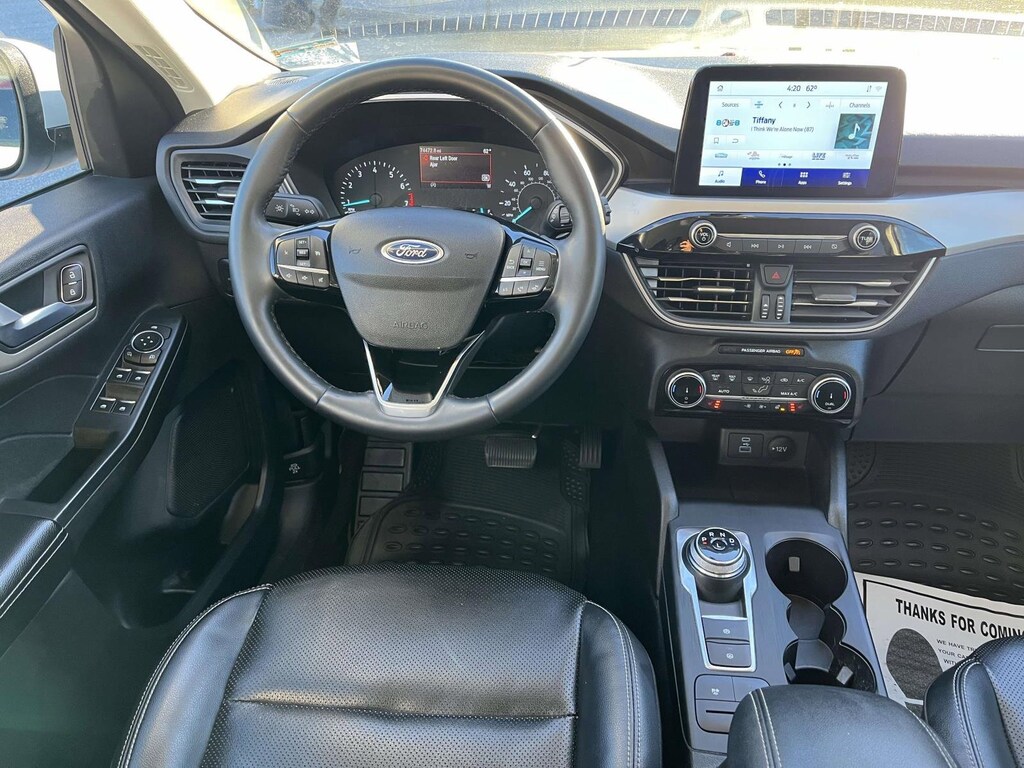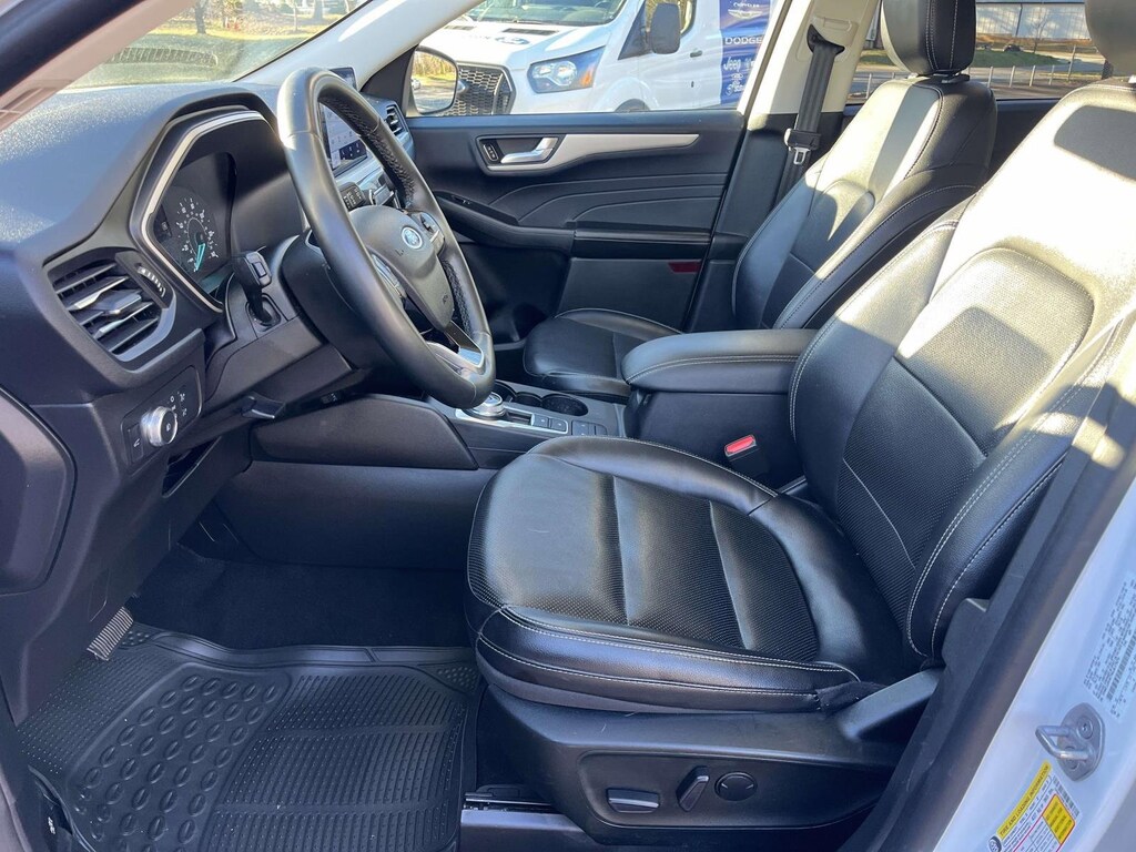 This 2022 Ford Escape SEL in Oxford White is equipped with 8-Speed Automatic 1.5L EcoBoost ** Apple Car Play / Android Auto, ** Leather, 18" Machined-Face Aluminum Wheels, Heated front seats, Power Liftgate.