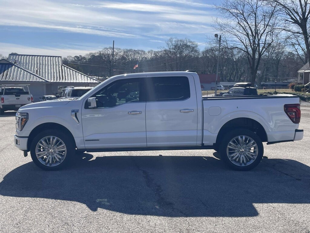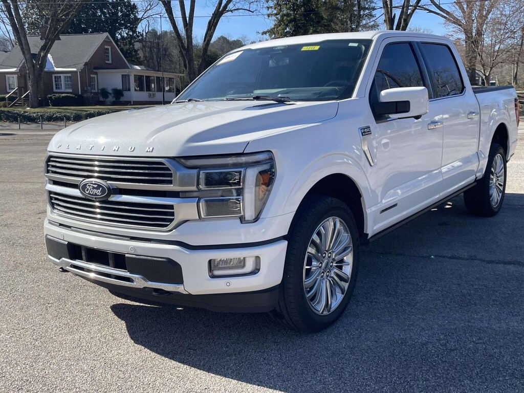 GOLD CERTIFIED!! 2025 Ford F-150 Platinum in Star White Metallic is equipped with 4WD 10-Speed Automatic 3.5L PowerBoost Full-Hybrid V6 ** Apple Car Play / Android Auto, 4WD, Electronic Locking w/3.73 Axle Ratio, Full Quilted Leather Bucket Seats, Heads-Up Display, Heated front seats, Heated rear seats, Heated steering wheel, Radio: B&O Unleashed Sound System by Bang & Olufsen, Twin Panel Moonroof, Unique Multi-Contour Leather Bucket Seats, Ventilated front seats, Wheels: 22" Premium Painted w/Chrome Inserts.