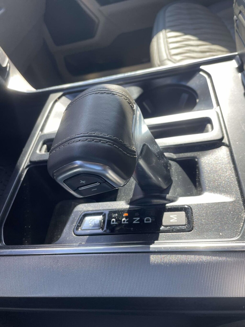 - Leather/aluminum center console trim