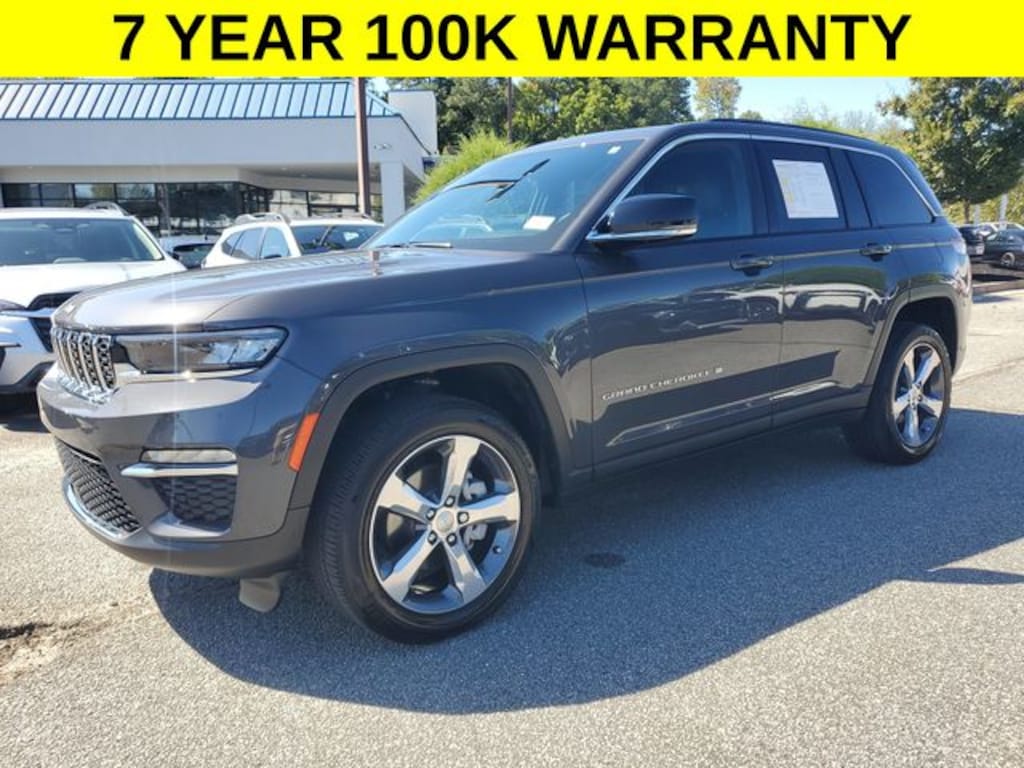 2025 Jeep Grand Cherokee Limited Certified. CARFAX One-Owner. ** Bluetooth, ** Backup Camera, ** Apple Car Play / Android Auto, 220 Amp Alternator, 4-Wheel Disc Brakes, 6 Speakers, 7 & 4-Pin Wiring Harness, ABS brakes, Active Noise Control System, Air Conditioning, Alloy wheels, AM/FM radio: SiriusXM with 360L, Audio memory, Auto High-beam Headlights, Automatic Headlamp Levelling System, Automatic temperature control, Brake assist, Bumpers: body-color, Capri Leatherette Seats, Class IV Receiver Hitch, Compass, Delay-off headlights, Driver door bin, Driver vanity mirror, Dual front impact airbags, Dual front side impact airbags, Dual-Pane Panoramic Sunroof, Electronic Stability Control, Emergency communication system, Four wheel independent suspension, Front Bucket Seats, Front Center Armrest w/Storage, Front dual zone A/C, Front fog lights, Front reading lights, Fully automatic headlights, Garage door transmitter, Heated door mirrors, Heated front seats, Heated rear seats, Heated steering wheel, Heavy-Duty Engine Cooling, Illuminated entry, Knee airbag, Low tire pressure warning, Memory seat, Model Year Tracking, Navigation System, Normal Duty Suspension, Occupant sensing airbag, Outside temperature display, Overhead airbag, Overhead console, Panic alarm, ParkView Rear Back-Up Camera, Passenger door bin, Passenger vanity mirror, Power door mirrors, Power driver seat, Power Liftgate, Power passenger seat, Power steering, Power windows, Quick Order Package 22E, Radio data system, Radio: Uconnect 5 Nav w/10.1" Display, Rear Load Levelling Suspension, Rear reading lights, Rear window defroster, Rear window wiper, Remote keyless entry, Security system, Speed control, Speed-Sensitive Wipers, Split folding rear seat, Spoiler, Steering wheel mounted audio controls, Tachometer, Telescoping steering wheel, Tilt steering wheel, Traction control, Trailer Hitch Zoom, Trailer Tow Package, Trip computer, Turn signal indicator mirrors, Variably intermittent wipers, Voltmeter, Wheels: 20" x 8.5" Polished/Painted Aluminum (DISC).
