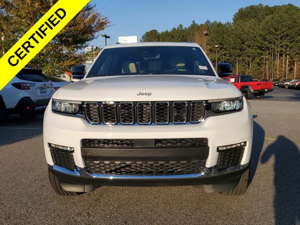 2025 Jeep Grand Cherokee L Limited Certified. CARFAX One-Owner. FCA US LLC Certified Pre-Owned Details: * Limited Warranty: 3 Month/3,000 Mile (whichever comes, ** Bluetooth, ** Backup Camera, ** Apple Car Play / Android Auto, 220 Amp Alternator, 3.45 Rear Axle Ratio, 3rd row seats: split-bench, 4-Wheel Disc Brakes, 6 Speakers, 7 & 4 Pin Wiring Harness, ABS brakes, Active Noise Control System, Air Conditioning, Alloy wheels, AM/FM radio: SiriusXM with 360L, Anti-whiplash front head restraints, Audio memory, Auto High-beam Headlights, Automatic Headlamp Leveling System, Automatic temperature control, Brake assist, Bumpers: body-color, Capri Leatherette Seats, Class IV Receiver Hitch, Compass, Delay-off headlights, Driver door bin, Driver vanity mirror, Dual Exhaust Tips, Dual front impact airbags, Dual front side impact airbags, Dual-Pane Panoramic Sunroof, Electronic Stability Control, Emergency communication system, Four wheel independent suspension, Front Bucket Seats, Front Center Armrest w/Storage, Front dual zone A/C, Front fog lights, Front reading lights, Fully automatic headlights, Garage door transmitter, Heated door mirrors, Heated front seats, Heated rear seats, Heated steering wheel, Heavy-Duty Engine Cooling, Illuminated entry, Interior Rear Facing Camera, Knee airbag, Low tire pressure warning, Manual Fold Seatbacks, Memory seat, Model Year Tracking, Navigation System, Normal Duty Suspension, Occupant sensing airbag, Outside temperature display, Overhead airbag, Overhead console, Panic alarm, ParkView Rear Back-Up Camera, Passenger door bin, Passenger vanity mirror, Power door mirrors, Power driver seat, Power Liftgate, Power passenger seat, Power steering, Power windows, Quick Order Package 22E, Radio data system, Radio: Uconnect 5 Nav w/10.1" Display, Rear air conditioning, Rear Load Leveling Suspension, Rear reading lights, Rear window defroster, Rear window wiper, Reclining 3rd row seat, Remote keyless entry, Security system, Speed control, Speed-Sensitive Wipers, Split folding rear seat, Spoiler, Steering wheel mounted audio controls, Tachometer, Telescoping steering wheel, Tilt steering wheel, Traction control, Trailer Hitch Zoom, Trailer Tow Package, Trip computer, Turn signal indicator mirrors, Variably intermittent wipers, Voltmeter, Wheels: 18" x 8.0" Polished/Painted Aluminum.