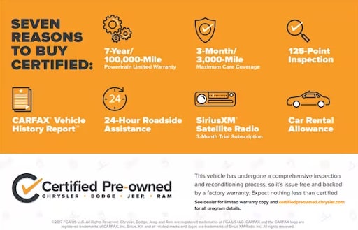 * Vehicles Up to 75,000 Miles and/or 5 Model Years. 24-Hour Towing & Roadside Assistance, Car Rental Allowance, CARFAX® Vehicle History ReportTM and an Introductory 3-month Subscription to SiriusXM® Satellite Radio & Certified Warranty Upgrades