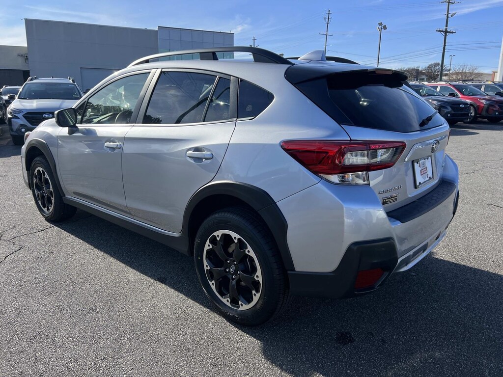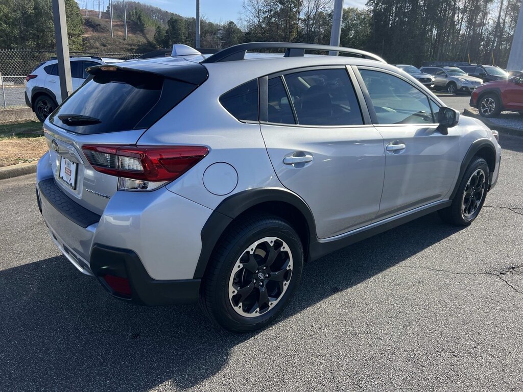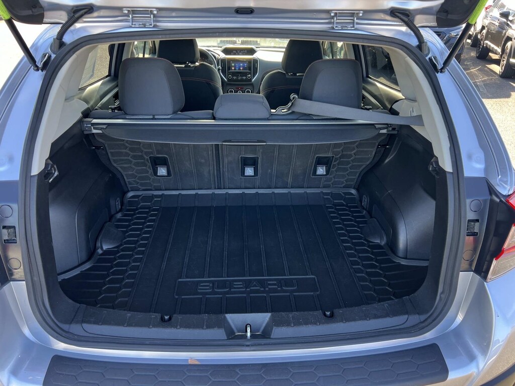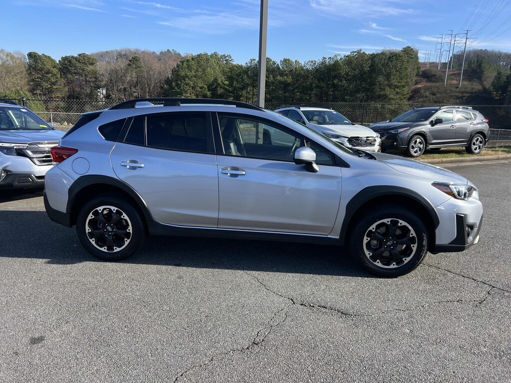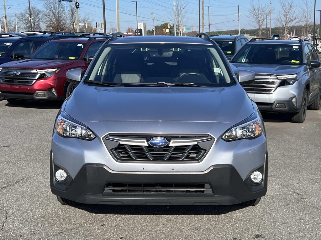 Certified. Ice Silver Metallic 2023 Subaru Crosstrek Premium AWD Lineartronic CVT 2.0L 4-Cylinder DOHC 16V New Feature, **Back up Camera, **Bluetooth, **Keyless Entry, **Heated Seats, **Sunroof/Moonroof, Crosstrek Premium, 4D Sport Utility, 2.0L 4-Cylinder DOHC 16V, Lineartronic CVT, AWD, Ice Silver Metallic, Black w/Orange Stitching w/Cloth Upholstery, 3.90 Axle Ratio, 4-Wheel Disc Brakes, 6 Speakers, 6-Way Power Driver's Seat, ABS brakes, Air Conditioning, Alloy wheels, AM/FM radio: SiriusXM, Anti-whiplash front head restraints, Automatic temperature control, Blind Spot Detection w/Rear Cross-Traffic Alert, Brake assist, Bumpers: body-color, CD player, Cloth Upholstery, Driver door bin, Driver vanity mirror, Dual front impact airbags, Dual front side impact airbags, Electronic Stability Control, Emergency communication system: STARLINK Safety and Security (Subscription Required), Exterior Parking Camera Rear, EyeSight System, Four wheel independent suspension, Front anti-roll bar, Front Bucket Seats, Front Center Armrest, Front fog lights, Front reading lights, Fully automatic headlights, Heated door mirrors, Heated Front Bucket Seats, Heated front seats, Illuminated entry, Keyless Access w/Push-Button Start, Knee airbag, Leather Shift Knob, Low tire pressure warning, Moonroof & BSD w/RCTA & Power Driver Seat, Occupant sensing airbag, Outside temperature display, Overhead airbag, Overhead console, Panic alarm, Passenger door bin, Passenger vanity mirror, Power door mirrors, Power Moonroof, Power steering, Power windows, Radio data system, Radio: Subaru STARLINK 6.5" Multimedia Plus System, Rear anti-roll bar, Rear window defroster, Rear window wiper, Remote keyless entry, Security system, Speed control, Speed-sensing steering, Split folding rear seat, Spoiler, STARLINK/Apple CarPlay/Android Auto, Steering wheel mounted audio controls, Tachometer, Telescoping steering wheel, Tilt steering wheel, Traction control, Trip computer, Variably intermittent wipers, Wheels: 17" x 7.0J Alum Alloy Blk w/Machine Finish.