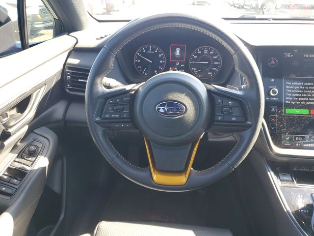 2023 Subaru Outback Wilderness Certified. CARFAX One-Owner. ** Bluetooth, ** Backup Camera, ** Apple Car Play / Android Auto, 4-Wheel Disc Brakes, 4.444 Axle Ratio, 6 Speakers, ABS brakes, Air Conditioning, Alloy wheels, AM/FM radio: SiriusXM, Auto High-beam Headlights, Auto-Dimming Exterior Mirror w/Approach Light, Auto-dimming Rear-View mirror, Automatic temperature control, Brake assist, Compass, Driver door bin, Driver vanity mirror, Dual front impact airbags, Dual front side impact airbags, Electronic Stability Control, Emergency communication system: STARLINK Safety Plus (3-year free trial), Exterior Parking Camera Rear, Four wheel independent suspension, Front Bucket Seats, Front dual zone A/C, Front fog lights, Front reading lights, Fully automatic headlights, Garage door transmitter: HomeLink, Heated door mirrors, Heated Front Bucket Seats, Heated front seats, Heated rear seats, Illuminated entry, Knee airbag, Leather steering wheel, Low tire pressure warning, Navigation System, Occupant sensing airbag, Outside temperature display, Overhead airbag, Overhead console, Panic alarm, Passenger vanity mirror, Power door mirrors, Power driver seat, Power Liftgate, Power Moonroof, Power Moonroof & Navigation & RAB, Power passenger seat, Power steering, Power windows, Radio: Subaru STARLINK 11.6" Multimedia Nav System, Rear Seat Back Protector, Rear seat center armrest, Rear window defroster, Rear window wiper, Remote keyless entry, Reverse Automatic Braking (RAB) System, Roof rack, Security system, Speed control, Speed-sensing steering, Split folding rear seat, Spoiler, StarTex-Trimmed Upholstery, Steering wheel mounted audio controls, Steering Wheel Paddle Shift Control Switches, Tachometer, Telescoping steering wheel, Tilt steering wheel, Traction control, Trip computer, Turn signal indicator mirrors, Variably intermittent wipers, Wheels: 17" x 7J Black Aluminum Alloy, Wireless Charger.
