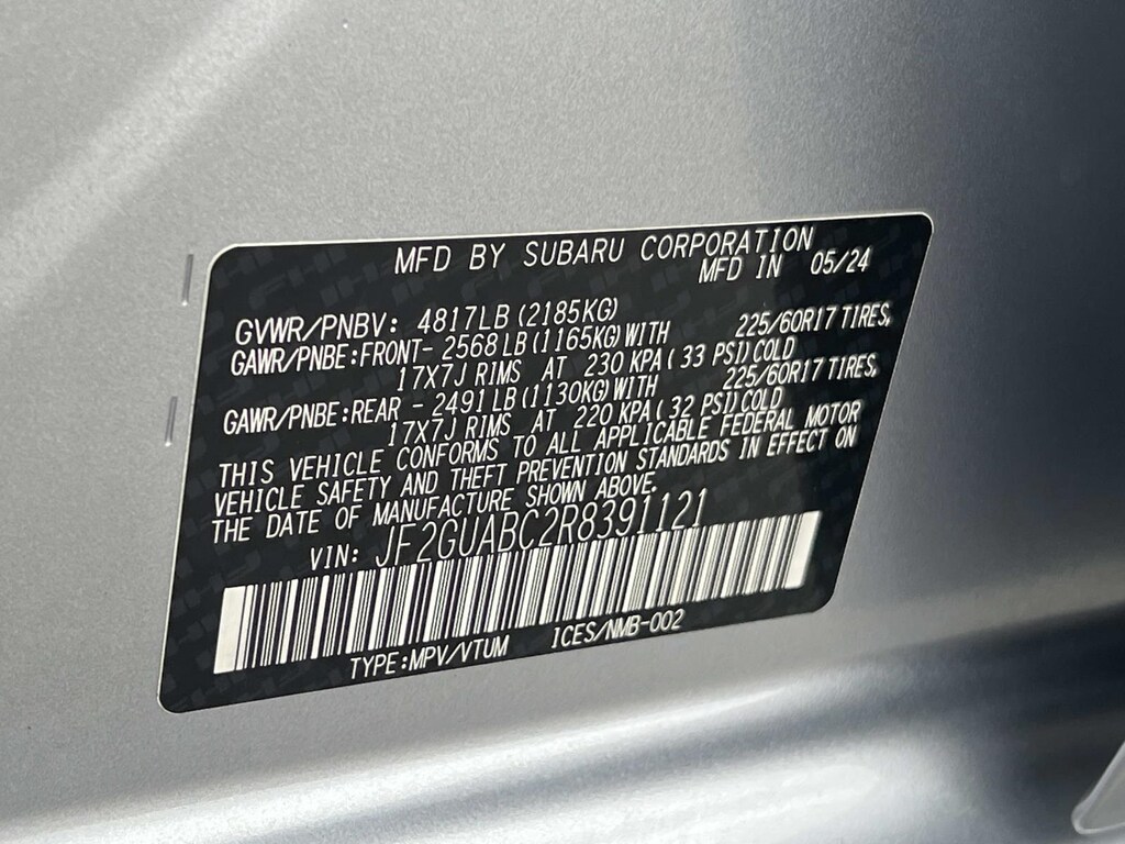 Certified. Ice Silver Metallic 2024 Subaru Crosstrek AWD Lineartronic CVT 2.0L 4-Cylinder DOHC 16V New Feature, **Back up Camera, **Bluetooth, **Keyless Entry, 4D Sport Utility, 2.0L 4-Cylinder DOHC 16V, Lineartronic CVT, AWD, Ice Silver Metallic, Gray Cloth, 3.90 Axle Ratio, 4 Speakers, 4-Wheel Disc Brakes, ABS brakes, Air Conditioning, All-Weather Floor Liners, Alloy wheels, AM/FM radio: SiriusXM, Anti-whiplash front head restraints, Auto High-beam Headlights, Automatic temperature control, Brake assist, Bumpers: body-color, Cloth Upholstery, Driver door bin, Driver vanity mirror, Dual front impact airbags, Dual front side impact airbags, Electronic Stability Control, Exterior Parking Camera Rear, Four wheel independent suspension, Front anti-roll bar, Front Bucket Seats, Front Center Armrest, Front dual zone A/C, Front reading lights, Fully automatic headlights, Illuminated entry, Knee airbag, Low tire pressure warning, Occupant sensing airbag, Outside temperature display, Overhead airbag, Overhead console, Panic alarm, Passenger door bin, Passenger vanity mirror, Power door mirrors, Power steering, Power windows, Radio data system, Radio: Subaru STARLINK Dual 7.0" Multimedia System, Rear anti-roll bar, Rear Seatback Protector, Rear window defroster, Rear window wiper, Remote keyless entry, Security system, Speed control, Speed-sensing steering, Split folding rear seat, Standard Model, STARLINK/Apple CarPlay/Android Auto, Steering wheel mounted audio controls, Tachometer, Telescoping steering wheel, Tilt steering wheel, Traction control, Trip computer, Variably intermittent wipers, Wheels: 17" x 7.0J Dark Gray Aluminum Alloy.