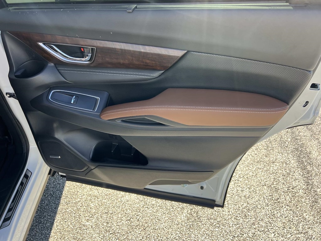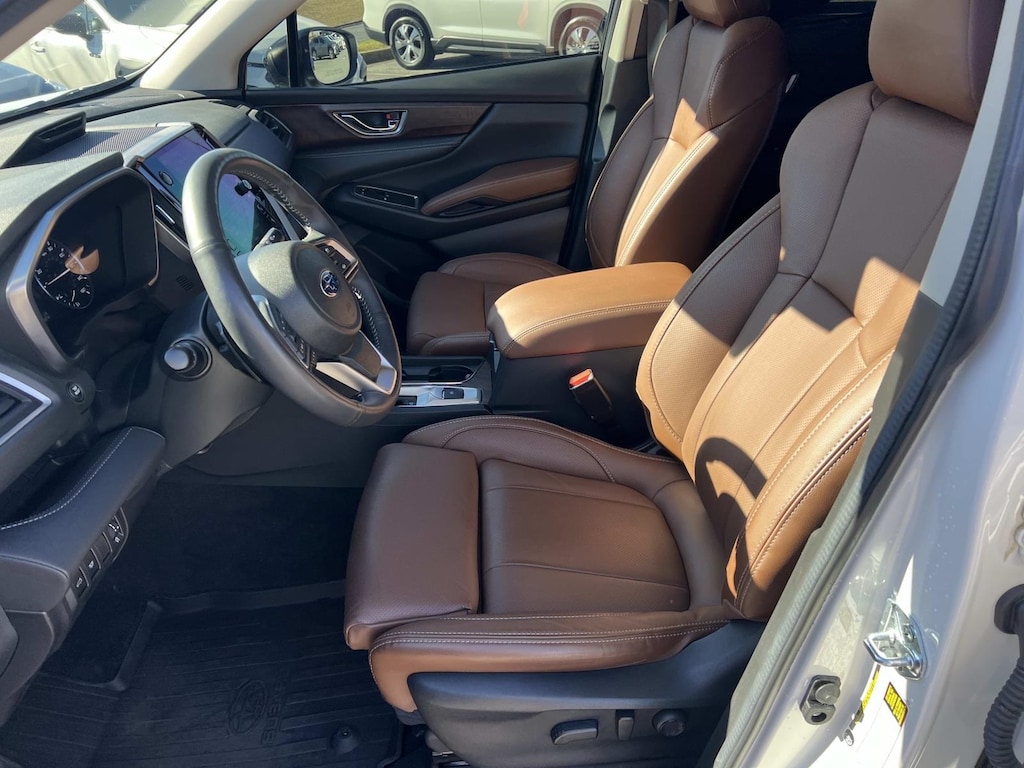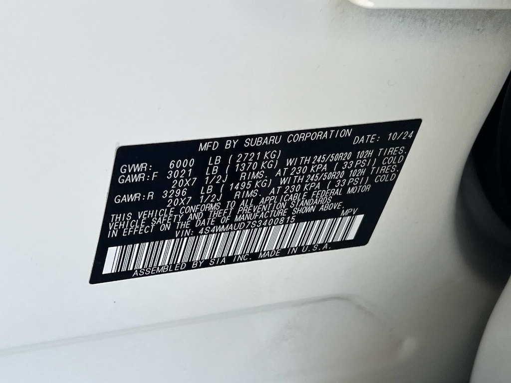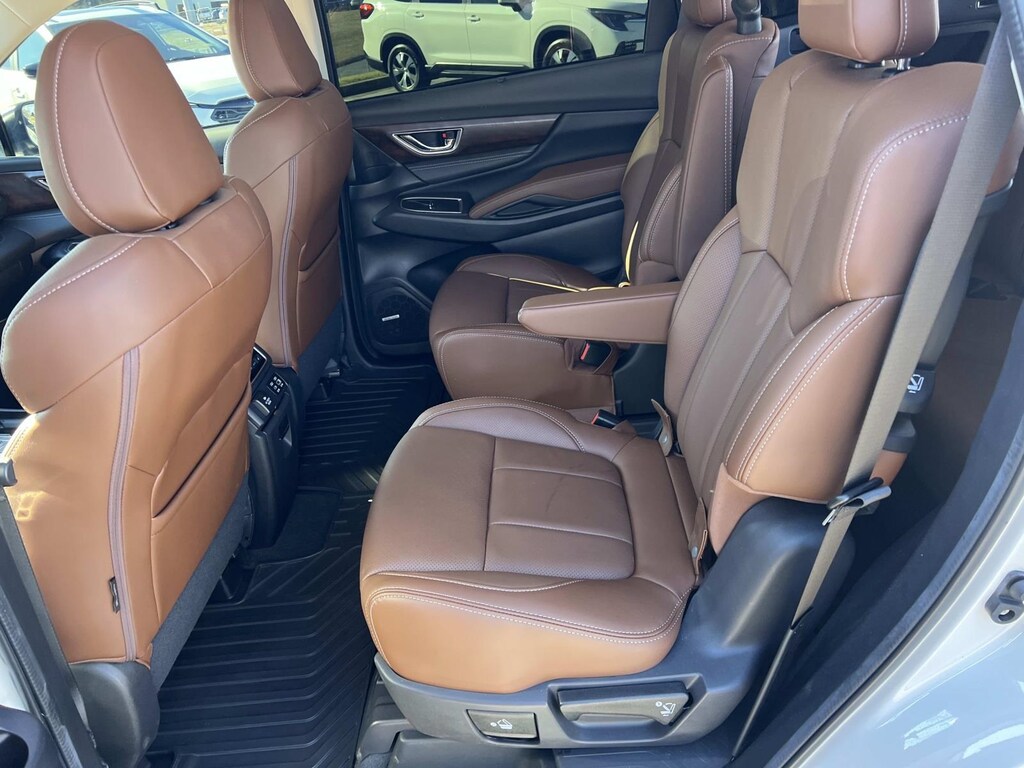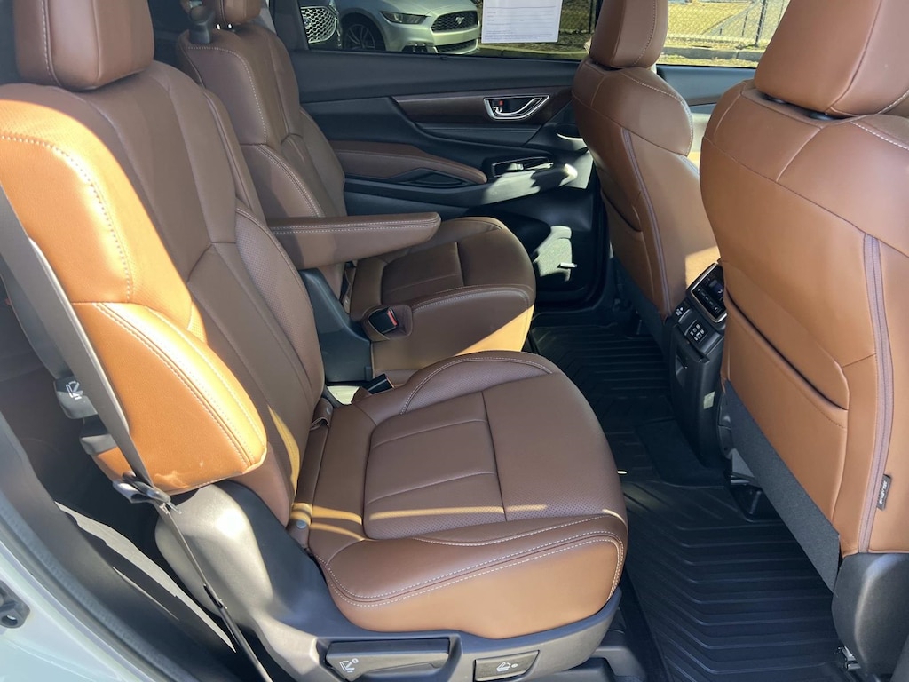 Certified. White 2025 Subaru Ascent Touring AWD Lineartronic CVT 2.4L 4-Cylinder DOHC 16V New Feature, **Back up Camera, **Bluetooth, **Keyless Entry, **Blind Spot Monitor, **Apple CarPlay, Ascent Touring, 4D Sport Utility, 2.4L 4-Cylinder DOHC 16V, Lineartronic CVT, AWD, White, Java Brown Leather, 14 Speakers, 3rd row seats: bench, 4-Wheel Disc Brakes, ABS brakes, Air Conditioning, All-Weather Floor Liners, Alloy wheels, AM/FM radio: SiriusXM with 360L, Apple CarPlay & Android Auto, Auto High-beam Headlights, Auto-Dimming Exterior Mirror w/Approach Light, Auto-dimming Rear-View mirror, Automatic temperature control, Brake assist, Bumpers: body-color, Cargo Tray, Compass, Delay-off headlights, Driver vanity mirror, Dual front impact airbags, Dual front side impact airbags, Electronic Stability Control, Emergency communication system: MySubaru Safety (3-year free trial), Exterior Parking Camera Rear, First Aid Kit, Four wheel independent suspension, Front anti-roll bar, Front Bucket Seats, Front Center Armrest, Front dual zone A/C, Front fog lights, Front reading lights, Fully automatic headlights, Garage door transmitter: HomeLink, harman/kardon® Speakers, Heated & Ventilated Front Bucket Seats, Heated door mirrors, Heated front seats, Heated rear seats, Heated steering wheel, HVAC memory, Illuminated entry, Knee airbag, Leather Shift Knob, Leather steering wheel, LED Upgrade, Low tire pressure warning, Memory seat, Occupant sensing airbag, Outside temperature display, Overhead airbag, Overhead console, Panic alarm, Passenger door bin, Passenger vanity mirror, Perforated Nappa Leather-Trimmed Upholstery, Popular Package #1, Power door mirrors, Power driver seat, Power Liftgate, Power moonroof, Power passenger seat, Power steering, Power windows, Radio data system, Radio: Subaru 11.6" Multimedia System w/Navigation, Rain sensing wipers, Rear air conditioning, Rear anti-roll bar, Rear Bumper Cover, Rear reading lights, Rear window defroster, Rear window wiper, Reclining 3rd row seat, Remote keyless entry, Security system, Speed control, Speed-sensing steering, Splash Guards, Split folding rear seat, Spoiler, Steering wheel mounted audio controls, Tachometer, Telescoping steering wheel, Tilt steering wheel, Traction control, Trailer Hitch, Trip computer, Turn signal indicator mirrors, Variably intermittent wipers, Ventilated front seats, Wheels: 20" x 7.5 J Dk Gray Alloy w/Machine Finish.