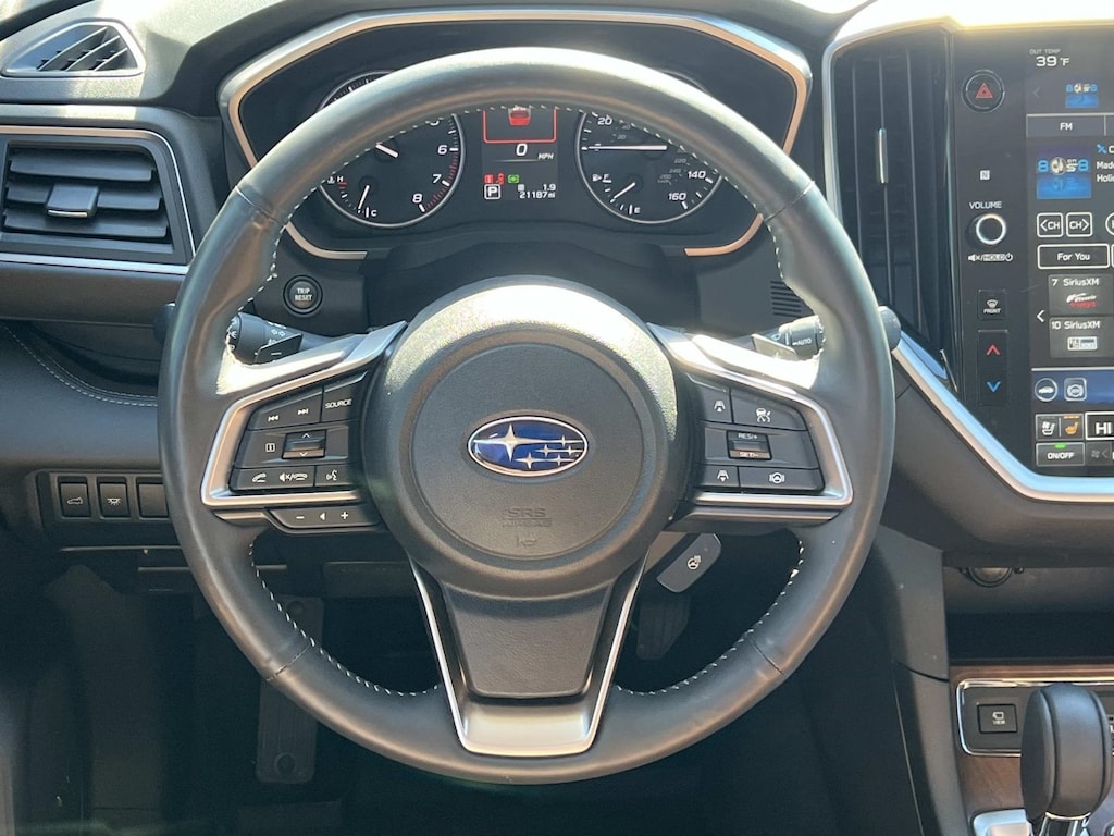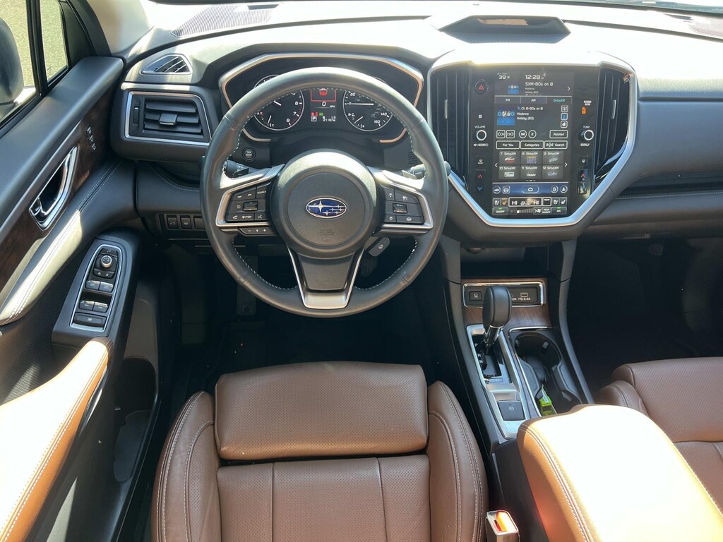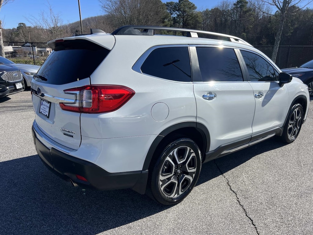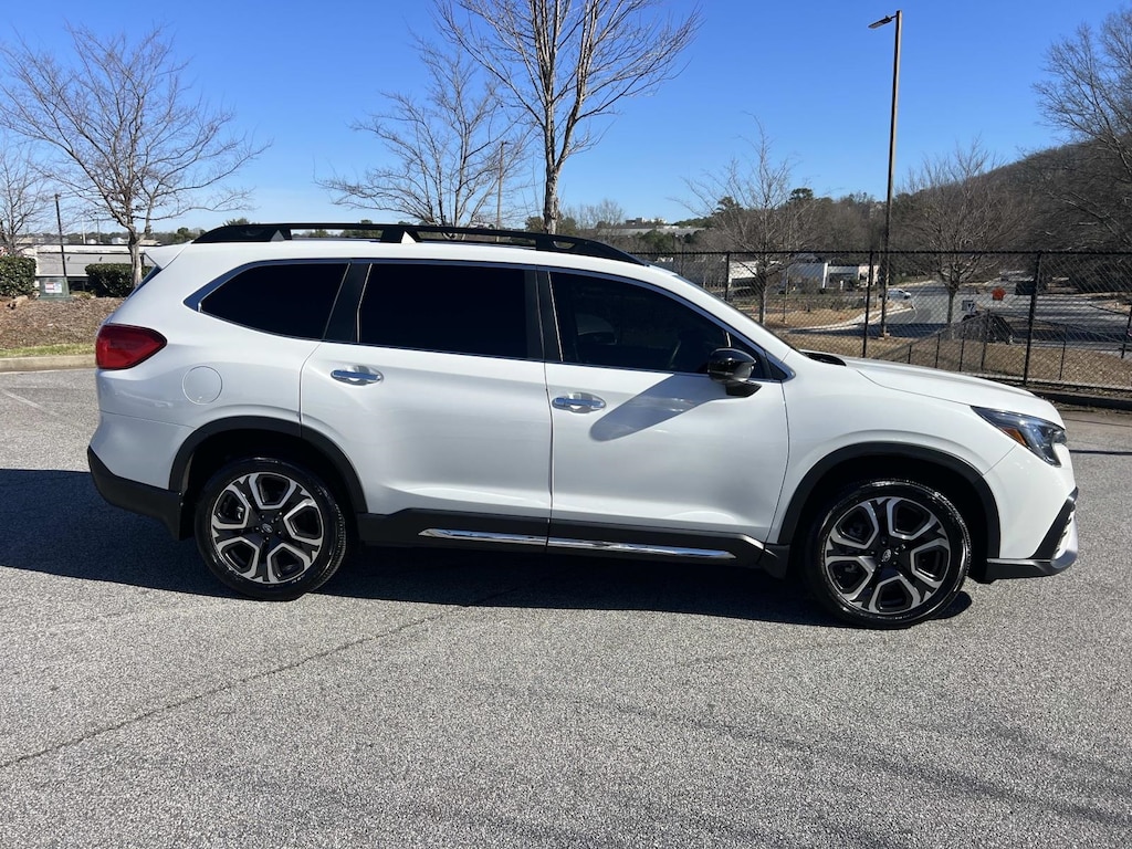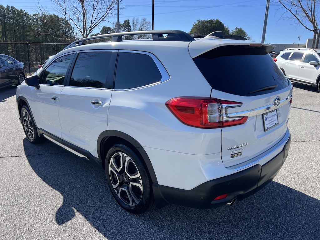Certified. White 2025 Subaru Ascent Touring AWD Lineartronic CVT 2.4L 4-Cylinder DOHC 16V New Feature, **Back up Camera, **Bluetooth, **Keyless Entry, **Blind Spot Monitor, **Apple CarPlay, Ascent Touring, 4D Sport Utility, 2.4L 4-Cylinder DOHC 16V, Lineartronic CVT, AWD, White, Java Brown Leather, 14 Speakers, 3rd row seats: bench, 4-Wheel Disc Brakes, ABS brakes, Air Conditioning, All-Weather Floor Liners, Alloy wheels, AM/FM radio: SiriusXM with 360L, Apple CarPlay & Android Auto, Auto High-beam Headlights, Auto-Dimming Exterior Mirror w/Approach Light, Auto-dimming Rear-View mirror, Automatic temperature control, Brake assist, Bumpers: body-color, Cargo Tray, Compass, Delay-off headlights, Driver vanity mirror, Dual front impact airbags, Dual front side impact airbags, Electronic Stability Control, Emergency communication system: MySubaru Safety (3-year free trial), Exterior Parking Camera Rear, First Aid Kit, Four wheel independent suspension, Front anti-roll bar, Front Bucket Seats, Front Center Armrest, Front dual zone A/C, Front fog lights, Front reading lights, Fully automatic headlights, Garage door transmitter: HomeLink, harman/kardon® Speakers, Heated & Ventilated Front Bucket Seats, Heated door mirrors, Heated front seats, Heated rear seats, Heated steering wheel, HVAC memory, Illuminated entry, Knee airbag, Leather Shift Knob, Leather steering wheel, LED Upgrade, Low tire pressure warning, Memory seat, Occupant sensing airbag, Outside temperature display, Overhead airbag, Overhead console, Panic alarm, Passenger door bin, Passenger vanity mirror, Perforated Nappa Leather-Trimmed Upholstery, Popular Package #1, Power door mirrors, Power driver seat, Power Liftgate, Power moonroof, Power passenger seat, Power steering, Power windows, Radio data system, Radio: Subaru 11.6" Multimedia System w/Navigation, Rain sensing wipers, Rear air conditioning, Rear anti-roll bar, Rear Bumper Cover, Rear reading lights, Rear window defroster, Rear window wiper, Reclining 3rd row seat, Remote keyless entry, Security system, Speed control, Speed-sensing steering, Splash Guards, Split folding rear seat, Spoiler, Steering wheel mounted audio controls, Tachometer, Telescoping steering wheel, Tilt steering wheel, Traction control, Trailer Hitch, Trip computer, Turn signal indicator mirrors, Variably intermittent wipers, Ventilated front seats, Wheels: 20" x 7.5 J Dk Gray Alloy w/Machine Finish.