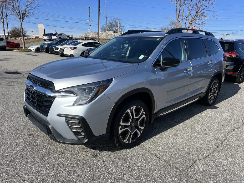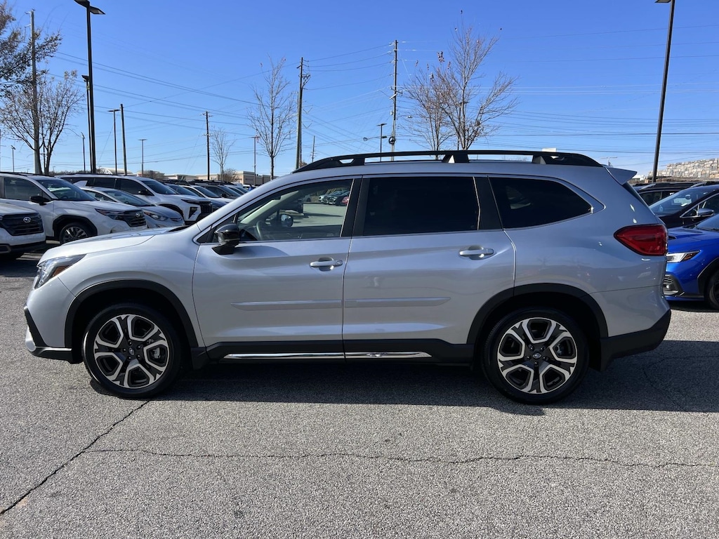 Certified. Ice Silver Metallic 2025 Subaru Ascent Limited AWD Lineartronic CVT 2.4L 4-Cylinder DOHC 16V New Feature, **Back up Camera, **Bluetooth, **Keyless Entry, Ascent Limited, 4D Sport Utility, 2.4L 4-Cylinder DOHC 16V, Lineartronic CVT, AWD, 14 Speakers, 3rd row seats: bench, 4-Wheel Disc Brakes, ABS brakes, Air Conditioning, Alloy wheels, AM/FM radio: SiriusXM with 360L, Apple CarPlay & Android Auto, Auto High-beam Headlights, Auto-dimming Rear-View mirror, Automatic temperature control, Brake assist, Bumpers: body-color, Compass, Delay-off headlights, Driver door bin, Driver vanity mirror, Dual front impact airbags, Dual front side impact airbags, Electronic Stability Control, Emergency communication system: MySubaru Safety (3-year free trial), Exterior Parking Camera Rear, Four wheel independent suspension, Front anti-roll bar, Front Bucket Seats, Front Center Armrest, Front dual zone A/C, Front fog lights, Front reading lights, Fully automatic headlights, Garage door transmitter: HomeLink, harman/kardon® Speakers, Heated door mirrors, Heated Front Bucket Seats, Heated front seats, Heated rear seats, Heated steering wheel, Illuminated entry, Knee airbag, Leather Shift Knob, Leather steering wheel, Low tire pressure warning, Memory seat, Navigation System, Occupant sensing airbag, Outside temperature display, Overhead airbag, Overhead console, Panic alarm, Passenger door bin, Passenger vanity mirror, Perforated Leather-Trimmed Upholstery, Popular Package #1, Power door mirrors, Power driver seat, Power Liftgate, Power moonroof, Power passenger seat, Power steering, Power windows, Radio data system, Radio: Subaru 11.6" Multimedia System w/Navigation, Rear air conditioning, Rear anti-roll bar, Rear Bumper Cover, Rear reading lights, Rear window defroster, Rear window wiper, Reclining 3rd row seat, Remote keyless entry, Security system, Speed control, Speed-sensing steering, Splash Guards, Split folding rear seat, Spoiler, Steering wheel mounted audio controls, Tachometer, Telescoping steering wheel, Tilt steering wheel, Traction control, Trip computer, Turn signal indicator mirrors, Variably intermittent wipers, Wheels: 20" x 7.5 J Dk Gray Alloy w/Machine Finish.