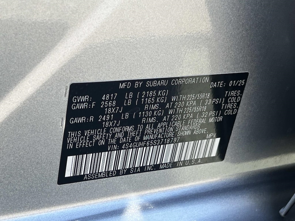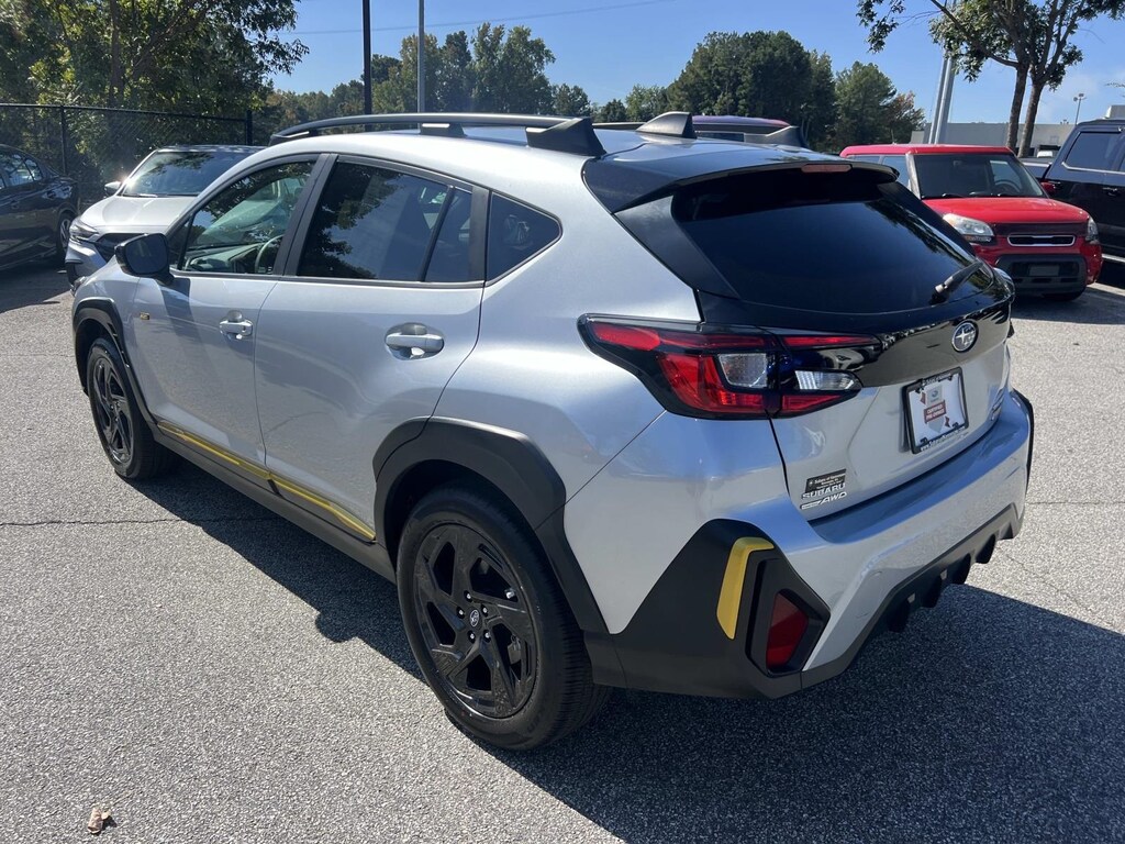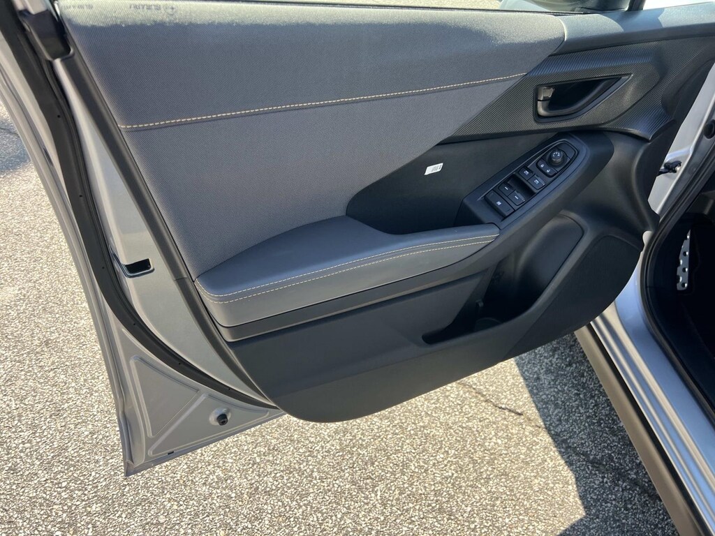 Certified. Ice Silver Metallic 2025 Subaru Crosstrek Sport AWD Lineartronic CVT 2.5L 4-Cylinder DOHC 16V New Feature, Crosstrek Sport, 4D Sport Utility, 2.5L 4-Cylinder DOHC 16V, Lineartronic CVT, AWD, Ice Silver Metallic, Gray w/Sport Cloth Upholstery, 4-Wheel Disc Brakes, 6 Speakers, ABS brakes, Air Conditioning, Alloy wheels, AM/FM radio: SiriusXM, Anti-whiplash front head restraints, Auto High-beam Headlights, Automatic temperature control, Brake assist, Bumpers: body-color, Driver door bin, Driver vanity mirror, Dual front impact airbags, Dual front side impact airbags, Electronic Stability Control, Emergency communication system, Exterior Parking Camera Rear, Four wheel independent suspension, Front anti-roll bar, Front Bucket Seats, Front Center Armrest, Front dual zone A/C, Front fog lights, Front reading lights, Fully automatic headlights, Heated door mirrors, Heated Front Bucket Seats, Heated front seats, Illuminated entry, Knee airbag, Leather Shift Knob, Leather steering wheel, Low tire pressure warning, Occupant sensing airbag, Outside temperature display, Overhead airbag, Overhead console, Panic alarm, Passenger door bin, Passenger vanity mirror, Power door mirrors, Power steering, Power windows, Radio data system, Radio: Subaru 11.6" Multimedia Plus System, Rear anti-roll bar, Rear seat center armrest, Rear window defroster, Rear window wiper, Security system, Speed control, Speed-sensing steering, Split folding rear seat, Spoiler, Sport Cloth Upholstery, Steering wheel mounted audio controls, Tachometer, Telescoping steering wheel, Tilt steering wheel, Traction control, Trip computer, Turn signal indicator mirrors, Variably intermittent wipers, Wheels: 18" x 7.0" J Dark Gray Aluminum-Alloy.