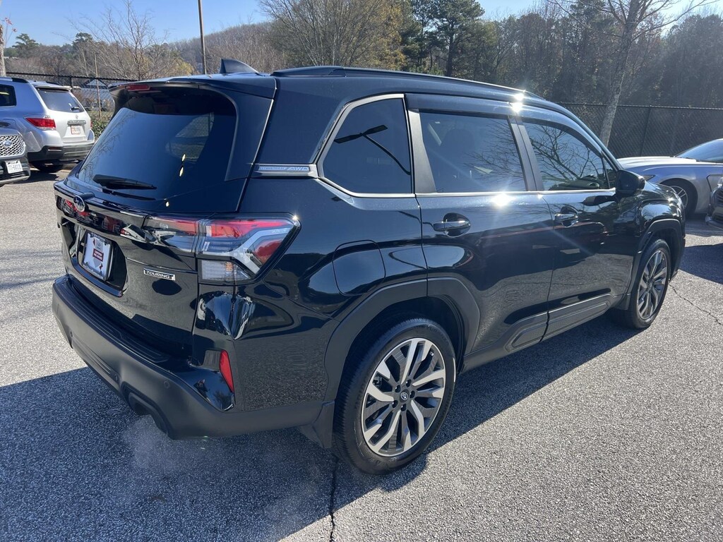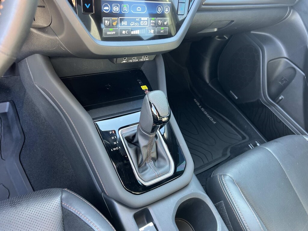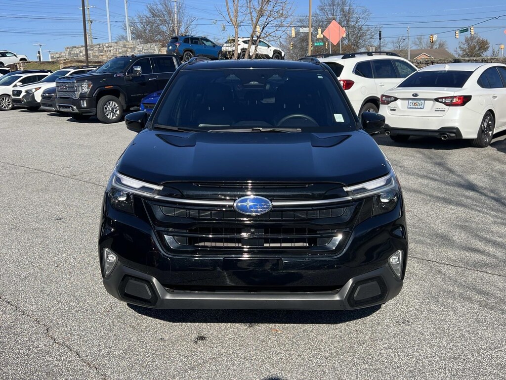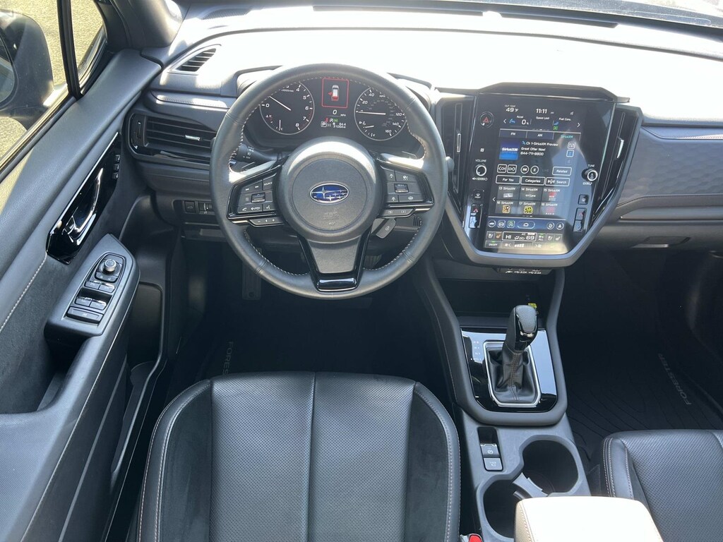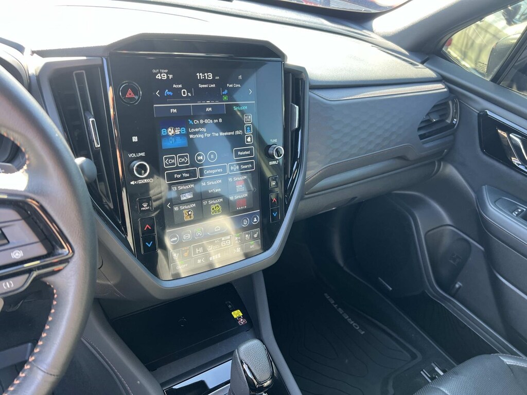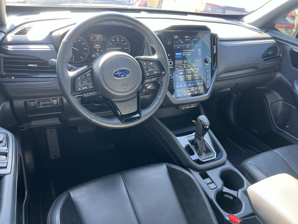 Certified. Gray 2025 Subaru Forester Touring AWD Lineartronic CVT 2.5L 4-Cylinder DOHC 16V New Feature, **Back up Camera, **Bluetooth, **Keyless Entry, **Blind Spot Monitor, **Apple CarPlay, Forester Touring, 4D Sport Utility, 2.5L 4-Cylinder DOHC 16V, Lineartronic CVT, AWD, Gray, Black Leather, 11 Speakers, 4-Wheel Disc Brakes, ABS brakes, Air Conditioning, Alloy wheels, AM/FM radio: SiriusXM with 360L, Anti-whiplash front head restraints, Auto High-beam Headlights, Automatic temperature control, Brake assist, Bumpers: body-color, Driver door bin, Driver vanity mirror, Dual front impact airbags, Dual front side impact airbags, Electronic Stability Control, Emergency communication system: MySubaru Safety (3-year free trial), Exterior Parking Camera Rear, Four wheel independent suspension, Front anti-roll bar, Front Bucket Seats, Front Center Armrest, Front dual zone A/C, Front fog lights, Front reading lights, Fully automatic headlights, harman/kardon® Speakers, Heated & Ventilated Front Bucket Seats, Heated door mirrors, Heated front seats, Heated rear seats, Heated steering wheel, HVAC memory, Illuminated entry, Knee airbag, Leather steering wheel, Low tire pressure warning, Memory seat, Navigation System, Occupant sensing airbag, Outside temperature display, Overhead airbag, Overhead console, Panic alarm, Passenger door bin, Passenger vanity mirror, Perforated Leather-Trimmed Upholstery, Power door mirrors, Power driver seat, Power Liftgate, Power moonroof: Panoramic, Power passenger seat, Power steering, Power windows, Radio data system, Radio: Subaru 11.6" Multimedia Navigation System, Rear anti-roll bar, Rear seat center armrest, Rear window defroster, Rear window wiper, Remote keyless entry, Security system, Speed control, Speed-sensing steering, Split folding rear seat, Spoiler, Steering wheel mounted audio controls, Tachometer, Telescoping steering wheel, Tilt steering wheel, Traction control, Trip computer, Turn signal indicator mirrors, Variably intermittent wipers, Ventilated front seats, Wheels: 19" x 7.5 J Dark Gray Aluminum-Alloy.