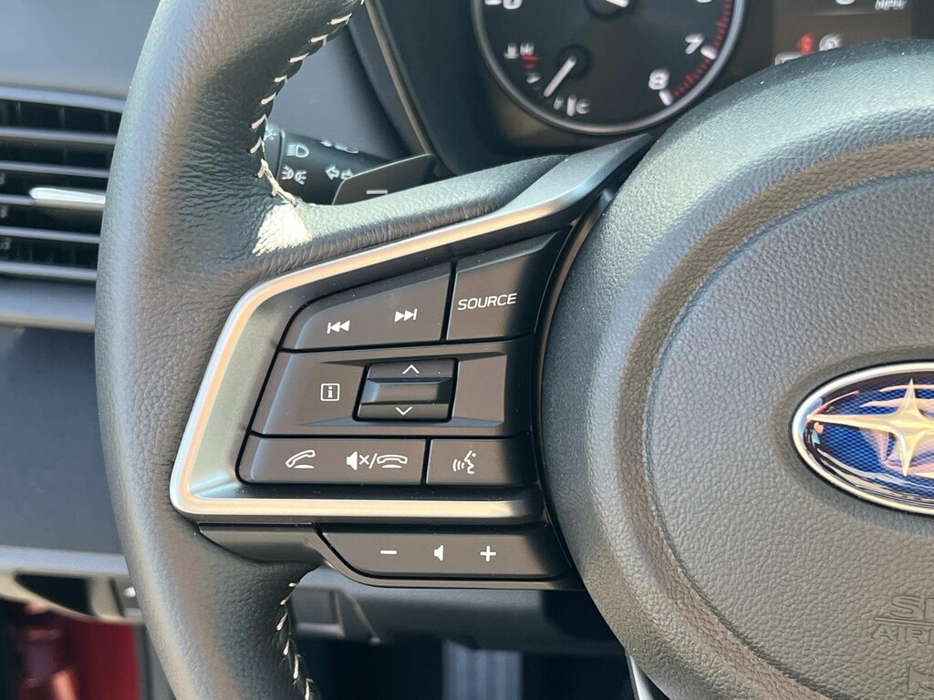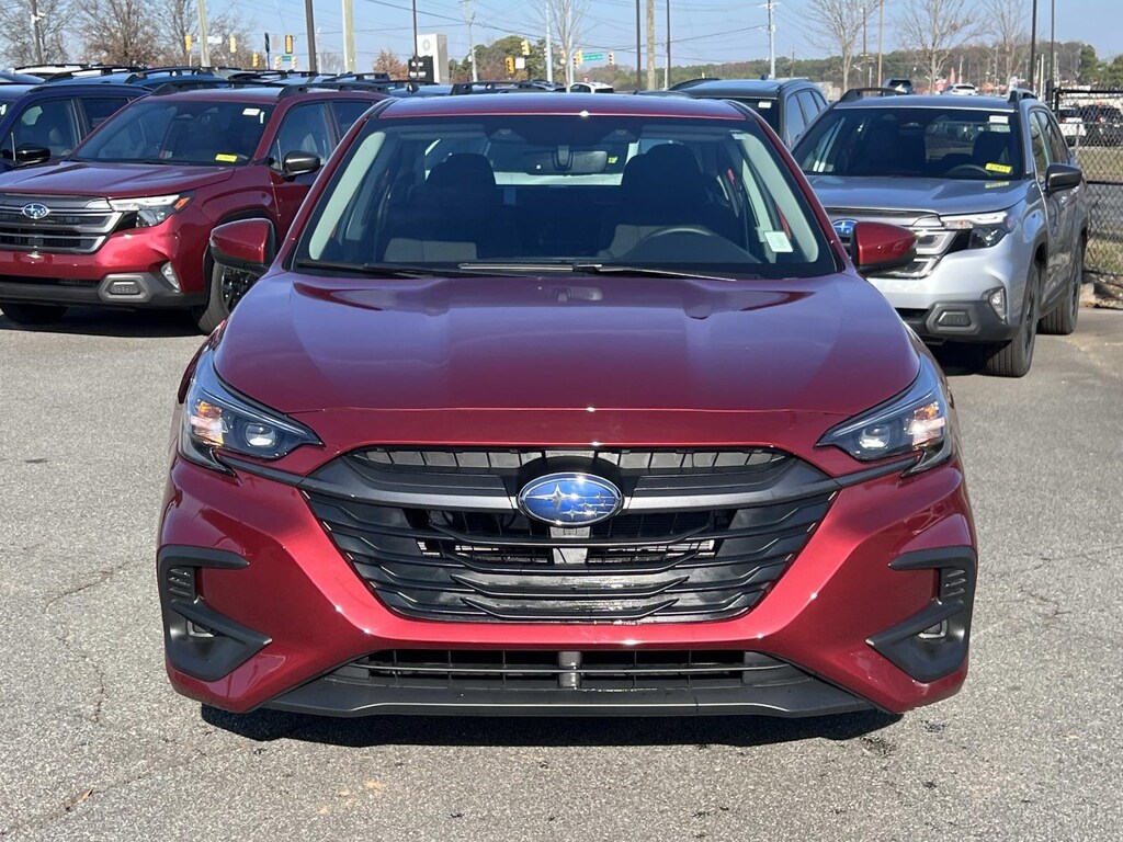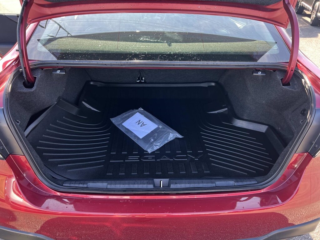 Certified. Crimson Red Pearl 2025 Subaru Legacy Premium AWD Lineartronic CVT 2.5L 4-Cylinder DOHC 16V New Feature, **Bluetooth, Legacy Premium, 4D Sedan, 2.5L 4-Cylinder DOHC 16V, Lineartronic CVT, AWD, Crimson Red Pearl, Slate Black Cloth, 4-Wheel Disc Brakes, 6 Speakers, ABS brakes, Air Conditioning, Alloy wheels, AM/FM radio: SiriusXM with 360L, Anti-whiplash front head restraints, Apple CarPlay & Android Auto, Auto High-beam Headlights, Auto-Dimming Mirror w/Compass & HomeLink, Automatic temperature control, Brake assist, Bumpers: body-color, Cargo Tray, Cloth Upholstery, Driver door bin, Driver vanity mirror, Dual front impact airbags, Dual front side impact airbags, Electronic Stability Control, Emergency communication system: MySubaru Safety Plus (3-year free trial included), Exterior Auto-Dimming Mirror w/Approach Light, Exterior Parking Camera Rear, Four wheel independent suspension, Front anti-roll bar, Front Bucket Seats, Front Center Armrest w/Storage, Front dual zone A/C, Front reading lights, Fully automatic headlights, Heated door mirrors, Heated Front Bucket Seats, Heated front seats, Illuminated entry, Knee airbag, Leather steering wheel, LED Upgrade, Low tire pressure warning, Occupant sensing airbag, Outside temperature display, Overhead airbag, Overhead console, Panic alarm, Passenger door bin, Passenger vanity mirror, Popular Package #1, Power door mirrors, Power driver seat, Power steering, Power windows, Radio: Subaru 11.6" Multimedia Plus System, Rear anti-roll bar, Rear Bumper Applique, Rear seat center armrest, Rear window defroster, Remote keyless entry, Security system, Speed control, Speed-sensing steering, Split folding rear seat, Standard Model, Steering wheel mounted audio controls, Tachometer, Telescoping steering wheel, Tilt steering wheel, Traction control, Trip computer, Turn signal indicator mirrors, Variably intermittent wipers, Wheels: 17" x 7.5J Blk Mach Finish Aluminum-Alloy.