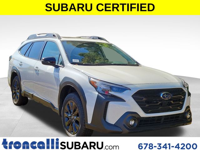 2025 Subaru Outback Onyx Edition Certified. CARFAX One-Owner. ** Bluetooth, ** Backup Camera, ** Apple Car Play / Android Auto, 12 Speakers, 4-Wheel Disc Brakes, ABS brakes, Air Conditioning, All-Weather Floor Liners, Alloy wheels, AM/FM radio: SiriusXM with 360L, Apple CarPlay & Android Auto, Auto High-beam Headlights, Auto-Dimming Exterior Mirror w/Approach Light, Auto-dimming Rear-View mirror, Automatic temperature control, Brake assist, Bumpers: body-color, Compass, Driver door bin, Driver vanity mirror, Dual front impact airbags, Dual front side impact airbags, Electronic Stability Control, Emergency communication system: MySubaru Safety (3-year free trial), Exterior Parking Camera Rear, Four wheel independent suspension, Front Bucket Seats, Front Center Armrest w/Storage, Front dual zone A/C, Front fog lights, Front reading lights, Fully automatic headlights, Garage door transmitter: HomeLink, harman/kardon® Speakers, Heated door mirrors, Heated Front Bucket Seats, Heated front seats, Heated steering wheel, Illuminated entry, Knee airbag, Leather Shift Knob, Leather steering wheel, LED Upgrade, Low tire pressure warning, Occupant sensing airbag, Outside temperature display, Overhead airbag, Overhead console, Panic alarm, Passenger door bin, Passenger vanity mirror, Popular Package #2, Power door mirrors, Power driver seat, Power Liftgate, Power moonroof, Power steering, Power windows, Radio: Subaru 11.6" Multimedia Plus System, Rear Bumper Cover, Rear Seat Back Protector, Rear seat center armrest, Rear window defroster, Rear window wiper, Remote keyless entry, Roof rack, Security system, Speed control, Speed-sensing steering, Splash Guards, Split folding rear seat, Spoiler, Standard Model, StarTex-Trimmed Upholstery, Steering wheel mounted audio controls, Tachometer, Telescoping steering wheel, Tilt steering wheel, Traction control, Trip computer, Turn signal indicator mirrors, Variably intermittent wipers, Wheels: 18" x 7J Black Aluminum-Alloy.