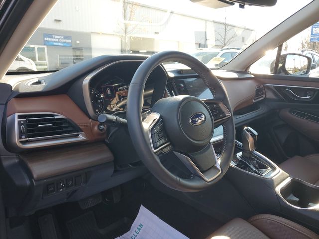 2025 Subaru Outback Touring Certified. CARFAX One-Owner. ** Bluetooth, ** Backup Camera, ** Apple Car Play / Android Auto, 12 Speakers, 4-Wheel Disc Brakes, ABS brakes, Air Conditioning, All-Weather Floor Liners, Alloy wheels, AM/FM radio: SiriusXM with 360L, Apple CarPlay & Android Auto, Auto High-beam Headlights, Auto-Dimming Exterior Mirror w/Approach Light, Auto-dimming Rear-View mirror, Automatic temperature control, Brake assist, Bumpers: body-color, Compass, Door Projector Light, Driver door bin, Driver vanity mirror, Dual front impact airbags, Dual front side impact airbags, Electronic Stability Control, Emergency communication system: MySubaru Safety (3-year free trial), Exterior Parking Camera Rear, Footwell Illumination Kit, Four wheel independent suspension, Front Bucket Seats, Front Center Armrest w/Storage, Front dual zone A/C, Front fog lights, Front reading lights, Fully automatic headlights, Garage door transmitter: HomeLink, harman/kardon® Speakers, Heated & Ventilated Front Bucket Seats, Heated door mirrors, Heated front seats, Heated rear seats, Heated steering wheel, HVAC memory, Illuminated entry, Knee airbag, Leather Shift Knob, Leather steering wheel, LED Upgrade, Low tire pressure warning, Memory seat, Navigation system: TomTom Navigation w/what3words, Occupant sensing airbag, Outside temperature display, Overhead airbag, Overhead console, Panic alarm, Passenger door bin, Passenger vanity mirror, Perforated Nappa Leather-Trimmed Upholstery, Popular Package #2, Power door mirrors, Power driver seat, Power Liftgate, Power moonroof, Power passenger seat, Power steering, Power windows, Radio: Subaru 11.6" Multimedia System w/Navigation, Rear Bumper Cover, Rear Seat Back Protector, Rear seat center armrest, Rear window defroster, Rear window wiper, Remote keyless entry, Roof rack, Security system, Speed control, Speed-sensing steering, Splash Guards, Split folding rear seat, Spoiler, Standard Model, Steering wheel mounted audio controls, Tachometer, Telescoping steering wheel, Tilt steering wheel, Traction control, Trip computer, Turn signal indicator mirrors, Variably intermittent wipers, Ventilated front seats, Wheels: 18" x 7J Black Aluminum-Alloy, Woodgrain Interior Trim Kit.