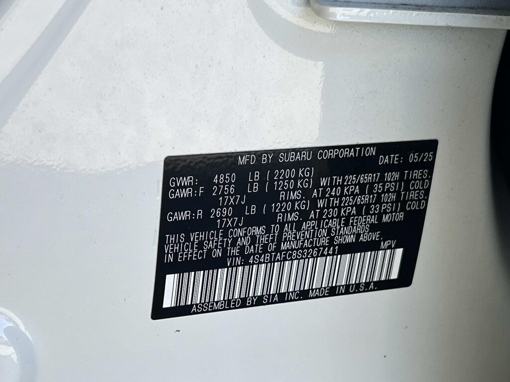 Certified. Crystal White 2025 Subaru Outback Premium AWD CVT Lineartronic 2.5L 4-Cylinder DOHC 16V New Feature, **Back up Camera, **Bluetooth, **Keyless Entry, **Blind Spot Monitor, Outback Premium, 4D Sport Utility, 2.5L 4-Cylinder DOHC 16V, CVT Lineartronic, AWD, Crystal White, Slate Black Cloth, 4-Wheel Disc Brakes, 6 Speakers, ABS brakes, Air Conditioning, All-Weather Floor Liners, Alloy wheels, AM/FM radio: SiriusXM with 360L, Apple CarPlay & Android Auto, Auto High-beam Headlights, Auto-Dimming Exterior Mirror w/Approach Light, Auto-Dimming Mirror w/Compass & HomeLink, Automatic temperature control, Blind Spot Detection (BSD), Brake assist, BSD & RCTA & Keyless Access & Push Button Start, Bumpers: body-color, Cloth Upholstery, Driver door bin, Driver vanity mirror, Dual front impact airbags, Dual front side impact airbags, Electronic Stability Control, Emergency communication system: MySubaru Safety (3-year free trial), Exterior Parking Camera Rear, Four wheel independent suspension, Front anti-roll bar, Front Bucket Seats, Front Center Armrest w/Storage, Front dual zone A/C, Front fog lights, Front reading lights, Fully automatic headlights, Hands-Free Power Rear Gate, Heated door mirrors, Heated Front Bucket Seats, Heated front seats, Illuminated entry, Keyless Access w/Push Button Start, Knee airbag, Leather Shift Knob, Leather steering wheel, LED Upgrade, Low tire pressure warning, Occupant sensing airbag, Outside temperature display, Overhead airbag, Overhead console, Panic alarm, Passenger door bin, Passenger vanity mirror, Popular Package #1, Power door mirrors, Power driver seat, Power Moonroof, Power steering, Power windows, Radio: Subaru 11.6" Multimedia Plus System, Radio: Subaru 11.6" Multimedia System w/Navigation, Rear anti-roll bar, Rear Bumper Cover, Rear Cross Traffic Alert (RCTA), Rear seat center armrest, Rear window defroster, Rear window wiper, Remote keyless entry, Roof rack, Security system, Speed control, Speed-sensing steering, Split folding rear seat, Spoiler, Steering wheel mounted audio controls, Tachometer, Telescoping steering wheel, Tilt steering wheel, Traction control, Trip computer, Turn signal indicator mirrors, Variably intermittent wipers, Wheels: 17" x 7J Black Aluminum-Alloy.