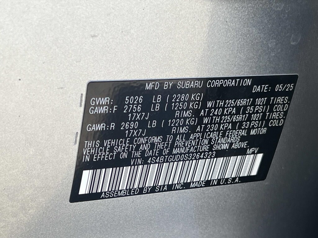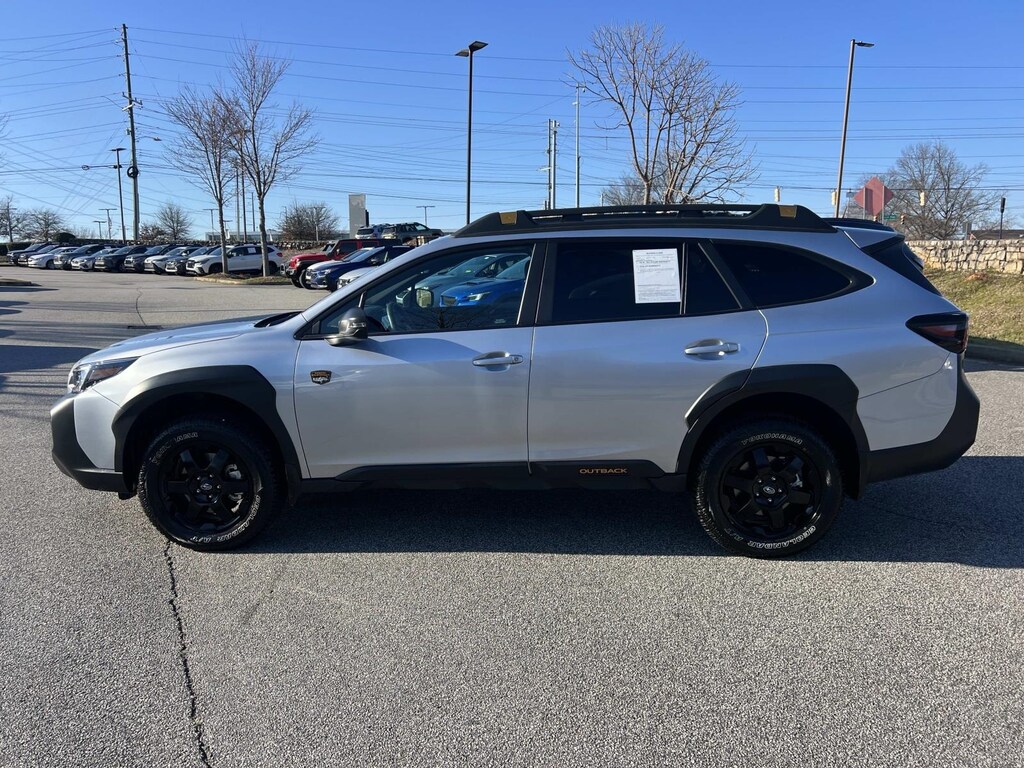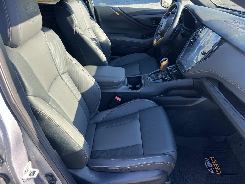 Certified. Ice Silver Metallic 2025 Subaru Outback Wilderness AWD CVT Lineartronic 2.4L DOHC New Feature, **Back up Camera, **Bluetooth, Outback Wilderness, 4D Sport Utility, 2.4L DOHC, CVT Lineartronic, AWD, Ice Silver Metallic, Gray Premium Synthetic, 12 Speakers, 4-Wheel Disc Brakes, ABS brakes, Air Conditioning, Alloy wheels, AM/FM radio: SiriusXM with 360L, Apple CarPlay & Android Auto, Auto High-beam Headlights, Auto-Dimming Exterior Mirror w/Approach Light, Auto-dimming Rear-View mirror, Automatic temperature control, Brake assist, Cargo Sidewall Protector, Compass, Console Lid Protector (DIO), Driver door bin, Driver vanity mirror, Dual front impact airbags, Dual front side impact airbags, Electronic Stability Control, Emergency communication system: MySubaru Safety (3-year free trial), Exterior Parking Camera Rear, Four wheel independent suspension, Front anti-roll bar, Front Bucket Seats, Front Center Armrest w/Storage, Front dual zone A/C, Front fog lights, Front reading lights, Fully automatic headlights, Garage door transmitter: HomeLink, harman/kardon® Speakers, Heated door mirrors, Heated Front Bucket Seats, Heated front seats, Heated rear seats, Heated steering wheel, Illuminated entry, Knee airbag, Leather steering wheel, LED Upgrade, Low tire pressure warning, Occupant sensing airbag, Outside temperature display, Overhead airbag, Overhead console, Panic alarm, Passenger door bin, Passenger vanity mirror, Power door mirrors, Power driver seat, Power Liftgate, Power Moonroof, Power Moonroof & Navigation & RAB, Power passenger seat, Power steering, Power windows, Radio: Subaru 11.6" Multimedia Plus System, Radio: Subaru 11.6" Multimedia System w/Navigation, Rear anti-roll bar, Rear Seat Back Protector, Rear seat center armrest, Rear window defroster, Rear window wiper, Remote keyless entry, Reverse Automatic Braking (RAB) System, Roof rack, Security system, Speed control, Speed-sensing steering, Splash Guards, Split folding rear seat, Spoiler, StarTex-Trimmed Upholstery, Steering wheel mounted audio controls, Tachometer, Telescoping steering wheel, Tilt steering wheel, Traction control, Trip computer, Turn signal indicator mirrors, Variably intermittent wipers, Wheels: 17" x 7J Matte Black Aluminum-Alloy, Wilderness Package, Wireless Charger.