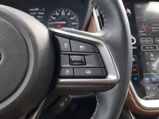 2025 Subaru Outback Touring Certified. CARFAX One-Owner. ** Bluetooth, ** Backup Camera, ** Apple Car Play / Android Auto, 12 Speakers, 4-Wheel Disc Brakes, ABS brakes, Air Conditioning, All-Weather Floor Liners, Alloy wheels, AM/FM radio: SiriusXM with 360L, Apple CarPlay & Android Auto, Auto High-beam Headlights, Auto-Dimming Exterior Mirror w/Approach Light, Auto-dimming Rear-View mirror, Automatic temperature control, Brake assist, Bumpers: body-color, Compass, Driver door bin, Driver vanity mirror, Dual front impact airbags, Dual front side impact airbags, Electronic Stability Control, Emergency communication system: MySubaru Safety (3-year free trial), Exterior Parking Camera Rear, Four wheel independent suspension, Front Bucket Seats, Front Center Armrest w/Storage, Front dual zone A/C, Front fog lights, Front reading lights, Fully automatic headlights, Garage door transmitter: HomeLink, harman/kardon® Speakers, Heated & Ventilated Front Bucket Seats, Heated door mirrors, Heated front seats, Heated rear seats, Heated steering wheel, HVAC memory, Illuminated entry, Knee airbag, Leather Shift Knob, Leather steering wheel, LED Upgrade, Low tire pressure warning, Memory seat, Navigation system: TomTom Navigation w/what3words, Occupant sensing airbag, Outside temperature display, Overhead airbag, Overhead console, Panic alarm, Passenger door bin, Passenger vanity mirror, Perforated Nappa Leather-Trimmed Upholstery, Popular Package #2, Power door mirrors, Power driver seat, Power Liftgate, Power moonroof, Power passenger seat, Power steering, Power windows, Radio: Subaru 11.6" Multimedia System w/Navigation, Rear Bumper Cover, Rear Seat Back Protector, Rear seat center armrest, Rear window defroster, Rear window wiper, Remote CD player, Remote keyless entry, Roof rack, Security system, Speed control, Speed-sensing steering, Splash Guards, Split folding rear seat, Spoiler, Standard Model, Steering wheel mounted audio controls, Tachometer, Telescoping steering wheel, Tilt steering wheel, Traction control, Trip computer, Turn signal indicator mirrors, Variably intermittent wipers, Ventilated front seats, Wheels: 18" x 7J Black Aluminum-Alloy.