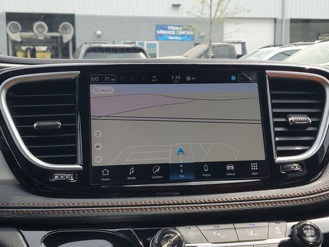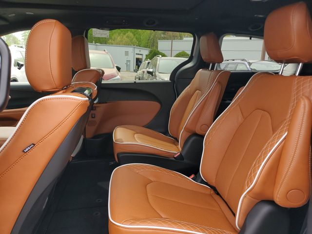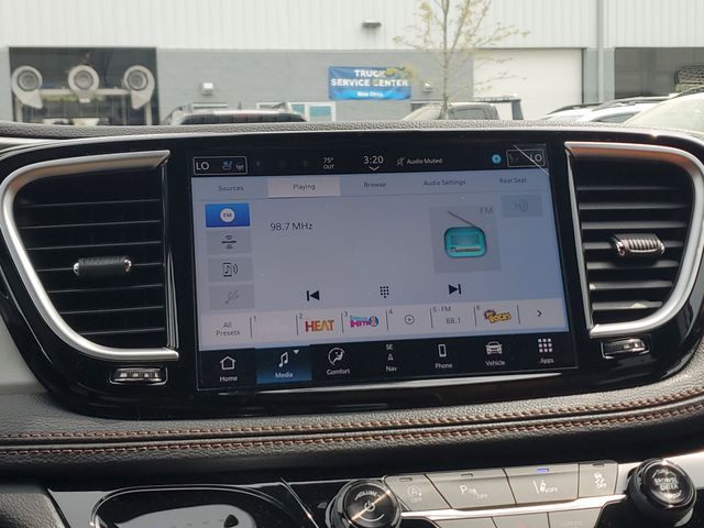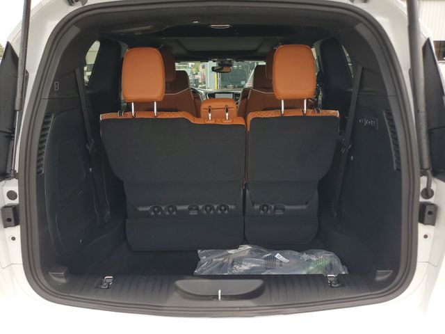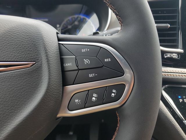 Included features are Quick Order Package 27S, Trailer Tow Group (7 and 4 Pin Trailer Tow Wiring Harness, Heavy-Duty Radiator, Hitch with 2" Receiver, and Trailer Sway Damping), 19 Speakers, 3.25 Axle Ratio, 3rd row seats: split-bench, 4-Wheel Disc Brakes, A/V remote, ABS brakes, Air Conditioning, Alloy wheels, AM/FM radio: SiriusXM 360L, Apple CarPlay/Android Auto, Audio memory, Auto-dimming door mirrors, Auto-dimming Rear-View mirror, Automatic temperature control, Bodyside moldings, Brake assist, Bumpers: body-color, Compass, Delay-off headlights, Driver door bin, Driver vanity mirror, Dual front impact airbags, Dual front side impact airbags, Electronic Stability Control, Emergency communication system: Chrysler Connect, Four wheel independent suspension, Front anti-roll bar, Front Bucket Seats, Front Center Armrest, Front dual zone A/C, Front fog lights, Front reading lights, Fully automatic headlights, Garage door transmitter, harman/kardon® Speakers, Headphones, Heated door mirrors, Heated front seats, Heated rear seats, Heated steering wheel, Illuminated entry, Knee airbag, Low tire pressure warning, Memory seat, Navigation System, Occupant sensing airbag, Outside temperature display, Overhead airbag, Overhead console, Panic alarm, ParkView Rear Back-Up Camera, Passenger door bin, Passenger vanity mirror, Power door mirrors, Power driver seat, Power Liftgate, Power moonroof, Power passenger seat, Power steering, Power windows, Premium Leather Trimmed Bucket Seats, Radio data system, Radio: Uconnect 5 Nav with 10.1" Display, Rain sensing wipers, Rear air conditioning, Rear reading lights, Rear window defroster, Rear window wiper, Reclining 3rd row seat, Remote keyless entry, Roof rack, Security system, Sepia Seat Color, Speed control, Split folding rear seat, Spoiler, Steering wheel mounted audio controls, Tachometer, Telescoping steering wheel, Tilt steering wheel, Touring Suspension, Traction control, Trip computer, Turn signal indicator mirrors, Variably intermittent wipers, Ventilated front seats, Voltmeter, and Wheels: 20" x 7.5" Paint/Polish Aluminum Design 2. Price includes the following rebates:$3500 - 2026 National Retail Bonus Cash . Exp. 04/30/2026 $500 - 2026 National 2026 Military Bonus Cash . Exp. 01/04/2027