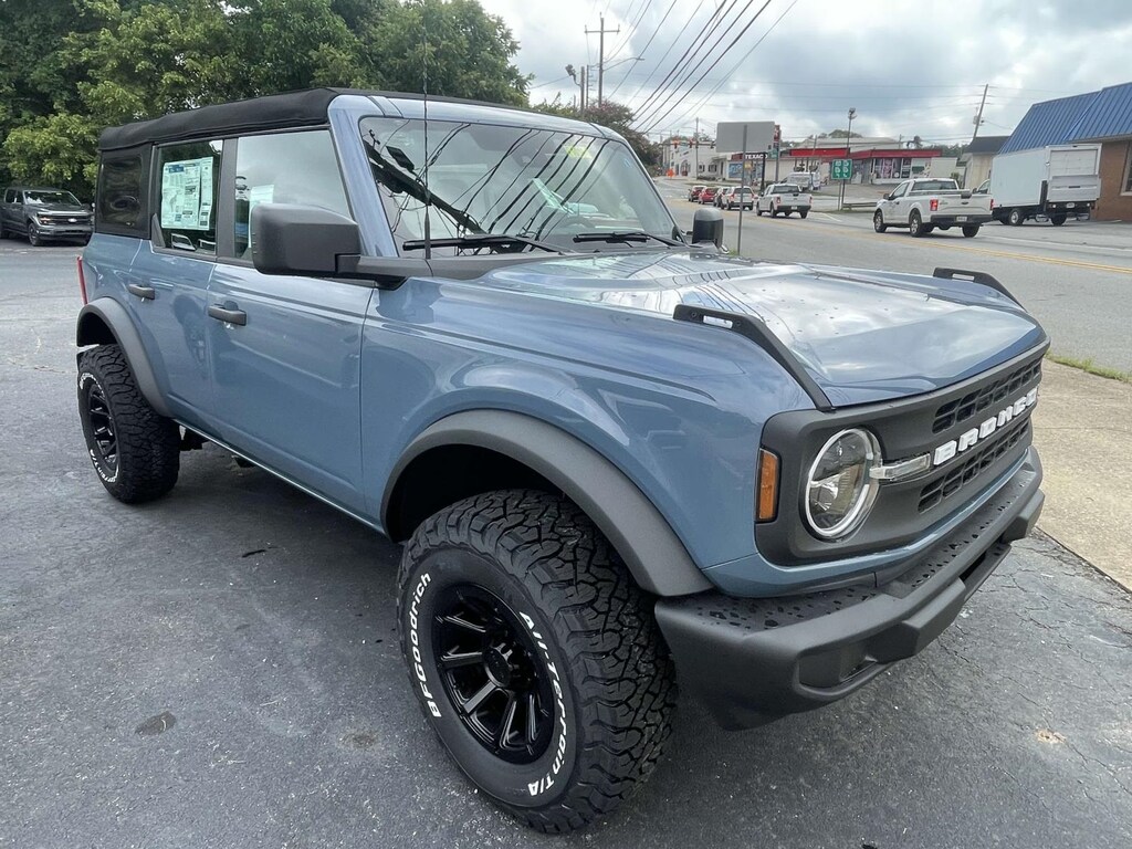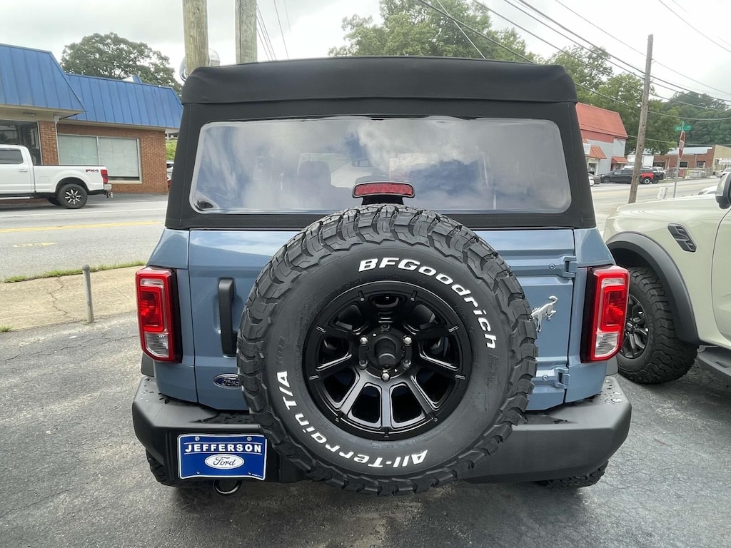 This 2025 Ford Bronco in Azure Gray Metallic Tri-Coat is equipped with. 4WD 10-Speed Automatic 2.3L EcoBoost I-4 ** Bluetooth, ** Apple Car Play / Android Auto, ** Back-Up Camera, ** Moonroof, ** Leather, ABS brakes, Compass, Electronic Stability Control, Heated door mirrors, Illuminated entry, Low tire pressure warning, Remote keyless entry, Traction control.