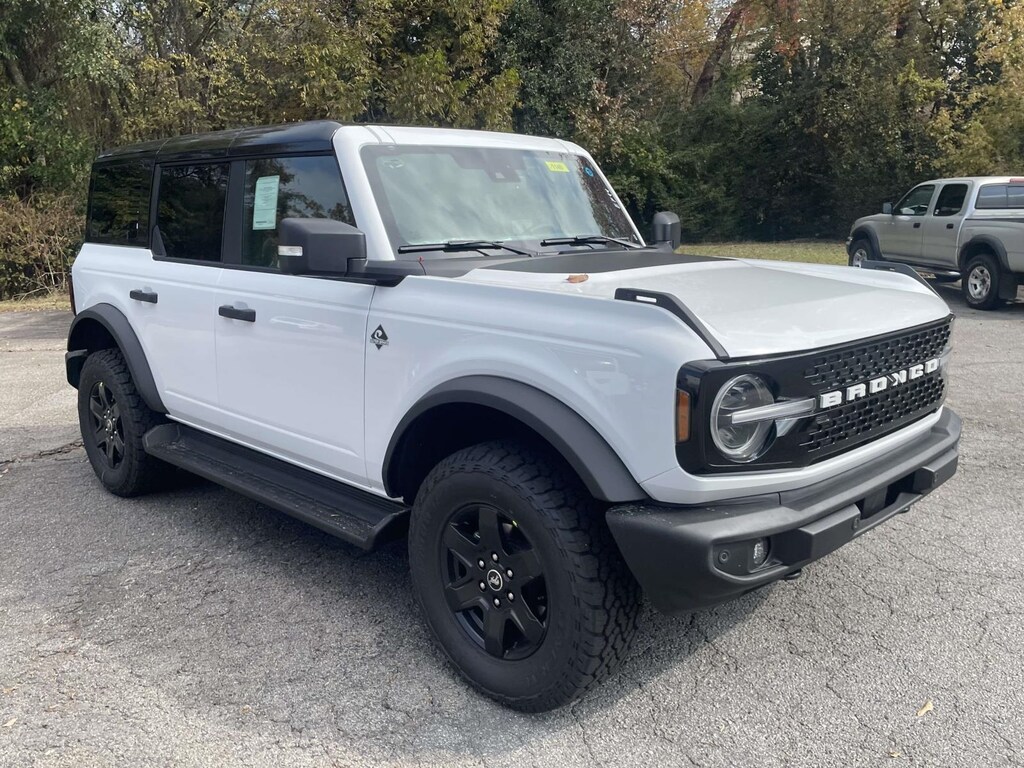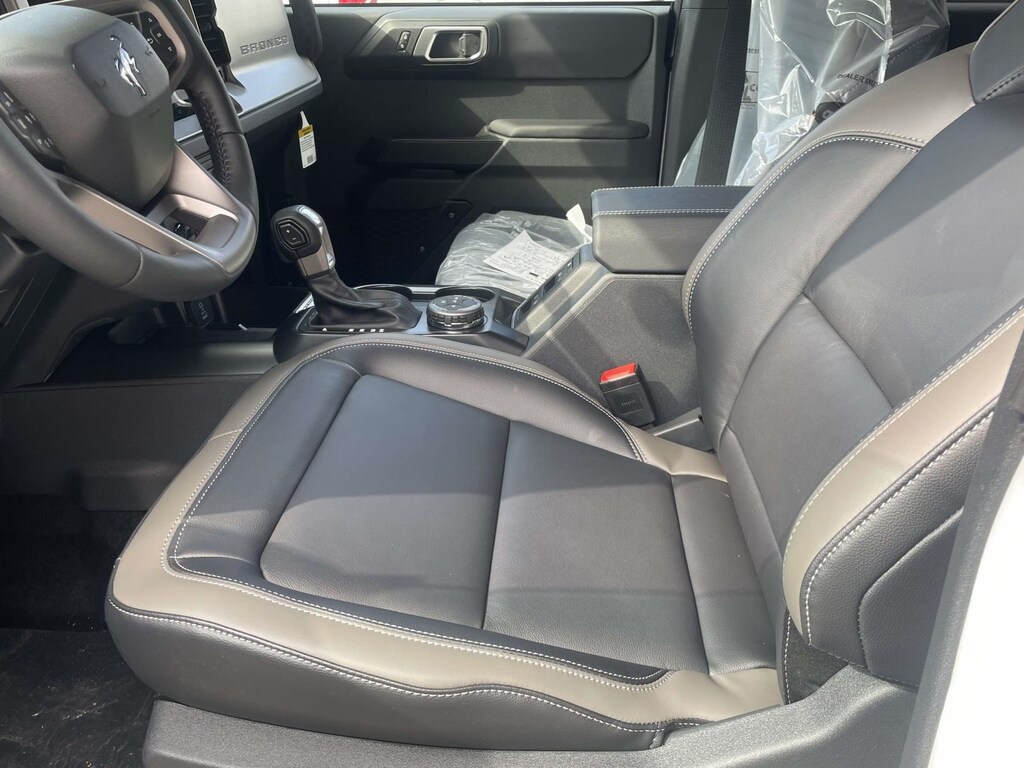 This 2025 Ford Bronco Outer Banks in Oxford White is equipped with 4WD 10-Speed Automatic 2.7L EcoBoost V6 ** Apple Car Play / Android Auto, ** Leather, Black Appearance Package, Black Molded-In-Color Door Handles, Black Molded-In-Color Fender Flares, Black Molded-In-Color Sideview Mirror Caps, Black-Painted Molded-In-Color Grille, Hard Top Sound Deadening Headliner, Rear-Window Defroster & Washer, Shadow Black-Painted Hard Top.