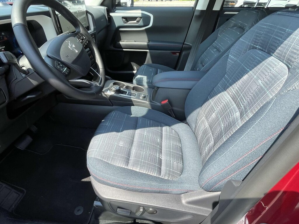 This 2025 Ford Bronco Sport in Ruby Red Metallic is equipped with. Heritage 4WD 8-Speed Automatic 1.5L EcoBoost ** Bluetooth, ** Apple Car Play / Android Auto, ** Back-Up Camera, Convenience Package, Equipment Group 250A, Front Driver/Passenger Seat Back Map Pockets, Heated 8-Way Power Driver's Seat, LED Fog Lamps, Premium Wrapped Steering Wheel, Universal Garage Door Opener (UGDO).