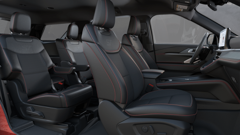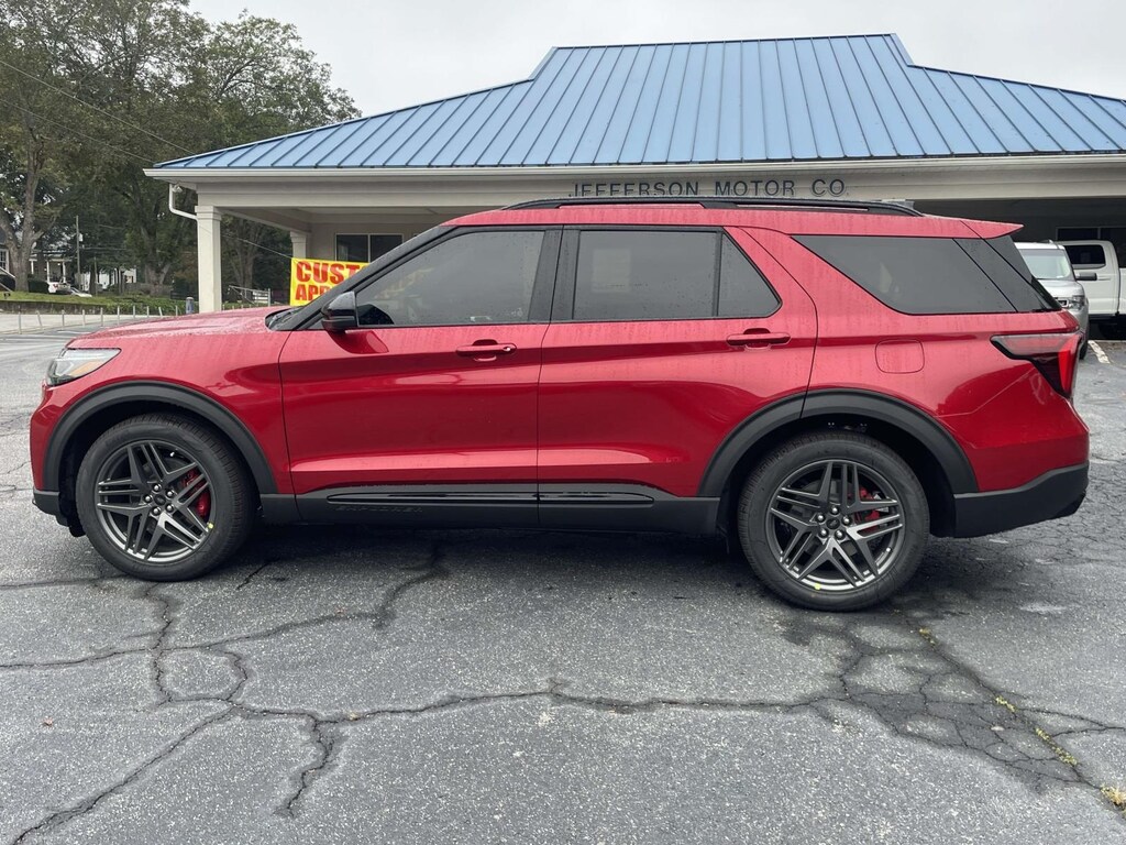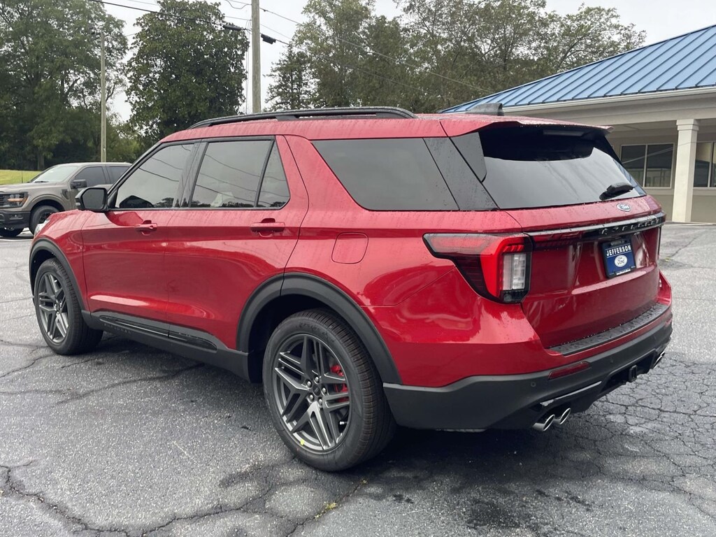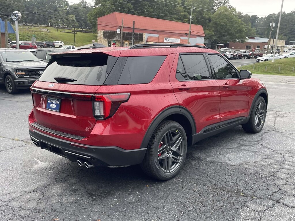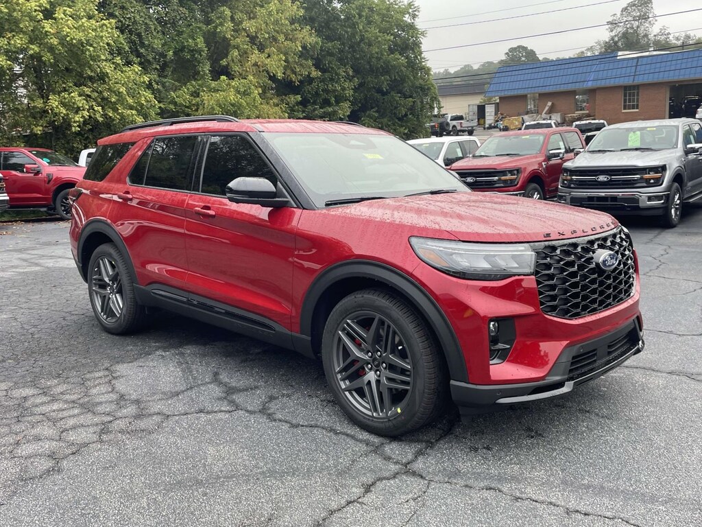 This 2025 Ford Explorer ST in Rapid Red Metallic is equipped with 4WD, 3.0L EcoBoost V6 ** Apple Car Play / Android Auto, 4WD, Heated front seats, Ventilated front seats, Wheels: 21" Magnetite-Painted Aluminum.
