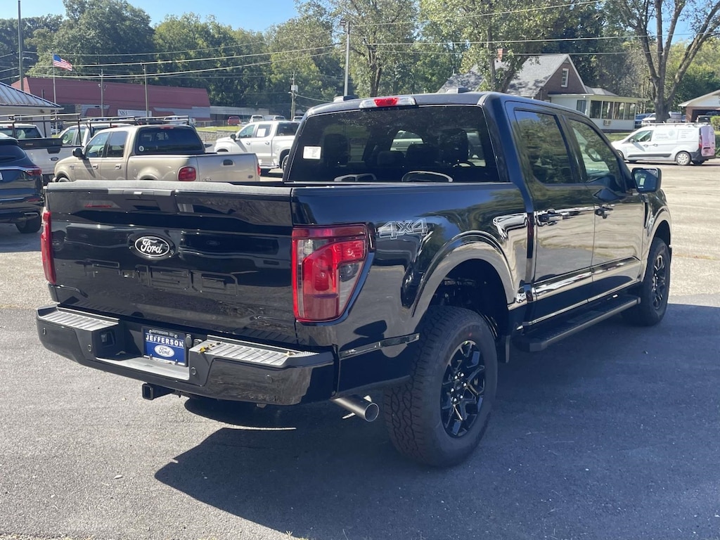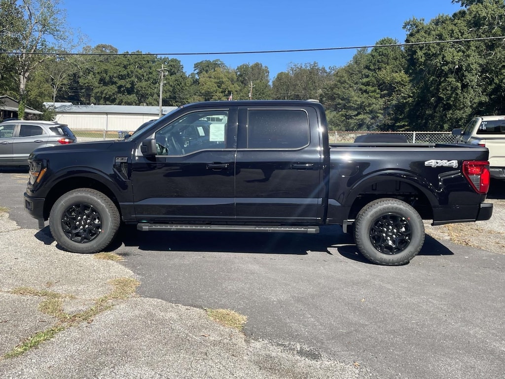 This 2025 Ford F-150 XLT in Black is equipped with 4WD 10-Speed Automatic 3.5L V6 EcoBoost ** Apple Car Play / Android Auto, 4WD, 6" Black Running Boards, Black Exterior Badging, Black Grille, Body-Color Front & Rear Bumpers, Dark Interior Appliques, Floor Shifter, Gray Box Side Decal, Unique Sport Cloth 40/Console/40 Front-Seats, Wheels: 18" Gloss Black, XLT Black Appearance Package.