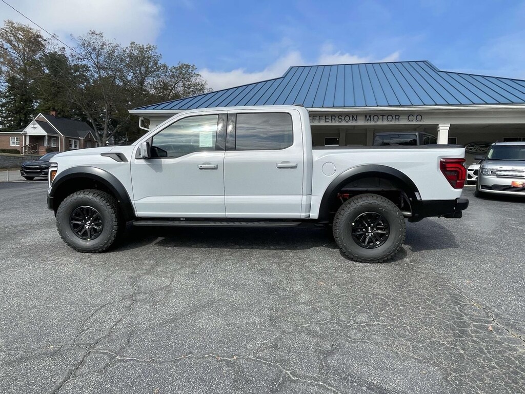 This 2025 Ford F-150 Raptor in Space White is equipped with10-Speed Automatic 3.5L V6 EcoBoost ** Apple Car Play / Android Auto, ** Leather, 4WD, Heated front seats, Heated rear seats, Ventilated front seats.