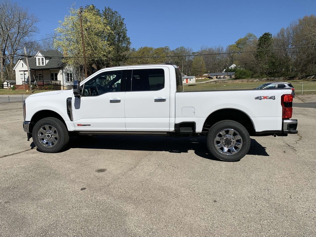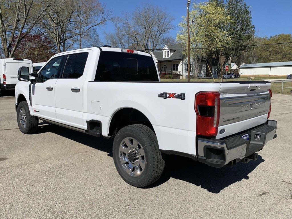 This 2025 Ford F-250SD in Oxford White is equipped with. King Ranch 4WD 10-Speed Automatic 6.7L High Output Power Stroke V8 Diesel 4WD, 5th Wheel/Gooseneck Hitch Prep Package, Chrome Door Handles, Chrome Exhaust Tip, Chrome Package, Order Code 700A, Unique Chrome Mirror Caps, Wheels: 20" Chrome PVD Aluminum.
