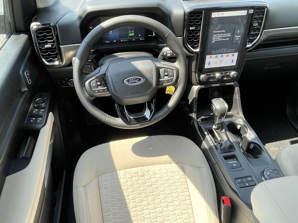 This 2025 Ford Ranger in Desert Sand is equipped with. XLT 4WD 10-Speed Automatic EcoBoost 2.3L I4 GTDi DOHC Turbocharged VCT ** Bluetooth, ** Apple Car Play / Android Auto, ** Back-Up Camera, 4WD, Navigation system: Connected Navigation.