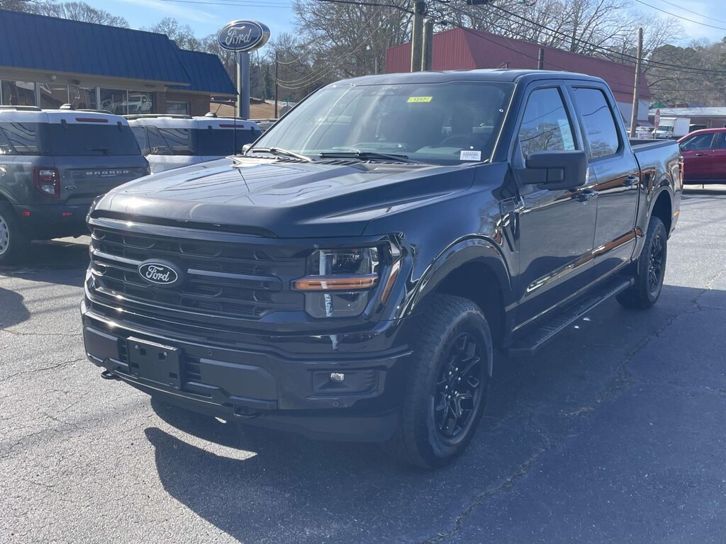 This 2026 Ford F-150 XLT 4WD in Agate Black Metallic is equipped with 10-Speed Automatic 5.0L V8 ** Apple Car Play / Android Auto, 4WD, 360 Degree Camera, 400W Pro Power Onboard (cab & Bed), 6" Black Running Boards, Adaptive Cruise Control with Stop and Go, AEB Oncoming, Auto-Dimming Rear-View Mirror, Black Exterior Badging, Black Grille, Body-Color Door Handles, Body-Color Front and Rear Bumpers, Chrome Front and Rear Bumpers, Dark Interior Appliques, Dual-Zone Electronic Automatic Temperature Control, Electronic Locking with 3.73 Axle Ratio, Equipment Group 302A Mid, Floor Shifter, Ford Co-Pilot360 Assist 2.0, Ford Connectivity Package (1-Year Included), Front Parking Sensors, Gray Box Side Decal, Heated Front Seats, Intelligent Access with Push Button Start, Power Glass Heated Sideview Mirrors, Power-Sliding Rear Window, Radio: AM/FM Stereo with SiriusXM 360L, Remote Start System with Remote Tailgate Release, SYNC 4 with Enhanced Voice Recognition, Towing Technology, Unique Sport Cloth 40/Console/40 Front-Seats, Wheels: 18" Gloss Black, Wrapped Steering Wheel, XLT Black Appearance Package.
