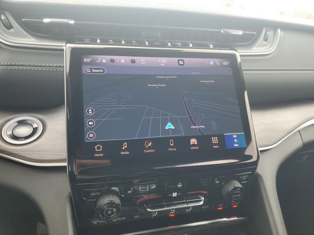 Included features are Blackout Model (Black Painted Roof, Delete Limited Badge, Dual-Pane Panoramic Sunroof, Gloss Black Exterior Accents, Interior Rear Facing Camera, and Wheels: 20" x 8.5" Black Painted Aluminum), Quick Order Package 22E, 3.45 Rear Axle Ratio, 3rd row seats: split-bench, 4-Wheel Disc Brakes, 6 Speakers, ABS brakes, Active Noise Control System, Air Conditioning, Alloy wheels, AM/FM radio: SiriusXM with 360L, Anti-whiplash front head restraints, Audio memory, Auto High-beam Headlights, Automatic temperature control, Brake assist, Bumpers: body-color, Capri Leatherette Seats, Compass, Delay-off headlights, Driver door bin, Driver vanity mirror, Dual front impact airbags, Dual front side impact airbags, Electronic Stability Control, Emergency communication system, Four wheel independent suspension, Front anti-roll bar, Front Bucket Seats, Front Center Armrest w/Storage, Front dual zone A/C, Front fog lights, Front reading lights, Fully automatic headlights, Garage door transmitter, Heated door mirrors, Heated front seats, Heated rear seats, Heated steering wheel, Illuminated entry, Knee airbag, Low tire pressure warning, Manual Fold Seatbacks, Memory seat, Model Year Tracking, Navigation System, Normal Duty Suspension, Occupant sensing airbag, Outside temperature display, Overhead airbag, Overhead console, Panic alarm, ParkView Rear Back-Up Camera, Passenger door bin, Passenger vanity mirror, Power door mirrors, Power driver seat, Power Liftgate, Power passenger seat, Power steering, Power windows, Radio data system, Radio: Uconnect 5 Nav with 10.1" Display, Rear air conditioning, Rear anti-roll bar, Rear reading lights, Rear window defroster, Rear window wiper, Reclining 3rd row seat, Remote keyless entry, Security system, Speed control, Speed-Sensitive Wipers, Split folding rear seat, Spoiler, Steering wheel mounted audio controls, Tachometer, Telescoping steering wheel, Tilt steering wheel, Traction control, Trip computer, Turn signal indicator mirrors, Variably intermittent wipers, Voltmeter, and Wheels: 18" x 8.0" Polished/Painted Aluminum. Price includes the following rebates:$1000 - 2025 National Stellantis Loyalty Bonus Cash . Exp. 03/31/2026 $1250 - 2025 Southeast BC Retail Bonus Cash . Exp. 03/31/2026 $2000 - 2025 National Bonus Cash . Exp. 03/31/2026 $2000 - 2025 National SFS Lease Loyalty Bonus Cash. Exp. 03/31/2026 $2500 - 2025 National Retail Bonus Cash . Exp. 03/31/2026 $500 - 2025 National 2025 Military Bonus Cash. Exp. 01/04/2027 $750 - 2025 Southeast BC SFS Retail Bonus Cash . Exp. 03/31/2026