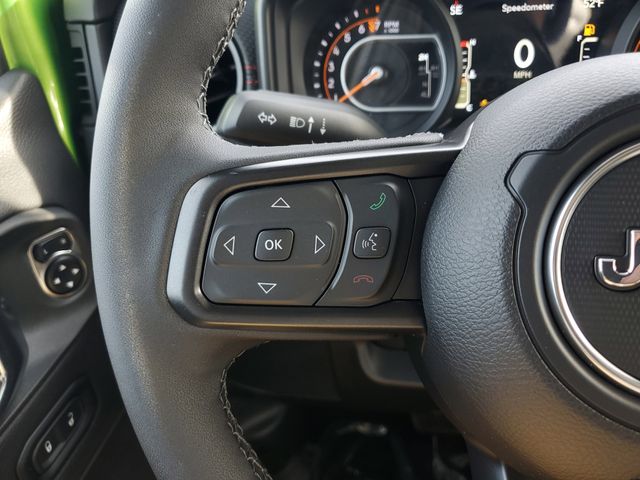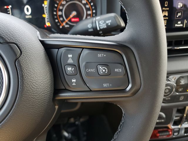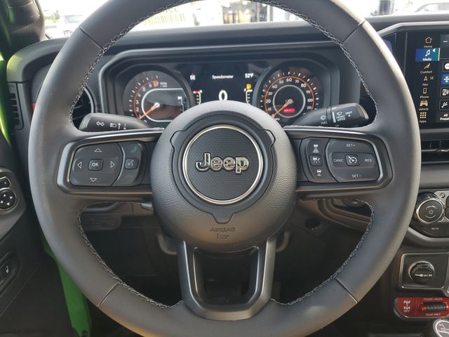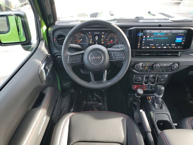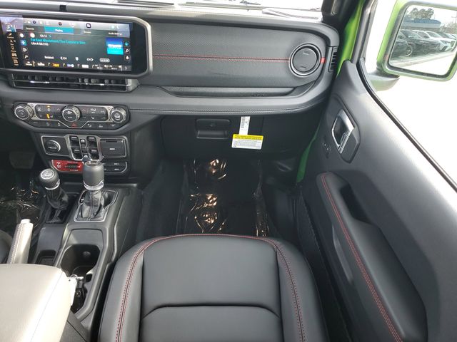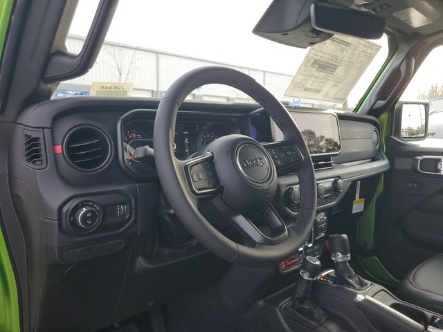 Included features are Quick Order Package 24Y Rubicon X (Alpine Premium Audio System, Auto High Beam Headlamp Control, Auto-Dimming Rear-View Mirror, Blind Spot and Cross Path Detection, Bluetooth Wireless Speaker, Body Color 3-Piece Hard Top, Body Color Rubicon Highline Flare, Freedom Panel Storage Bag, Full Length Floor Console Premium Armrest, Heated Front Seats, Heated Steering Wheel, Integrated Off-Road Camera, Integrated Voice Command with Bluetooth, Leather Wrapped Park Brake Handle, Leather Wrapped Shift Knob, MOPAR Hardtop Headliner, ParkSense Rear Park Assist System, Power 4-Way Driver Lumbar Adjust, Power 4-Way Passenger Lumbar Adjust, Power Adjust 8-Way Driver Seat, Power Adjust 8-Way Front Passenger Seat, Power Adjust Nappa Leather Seats, Premium Door Trim Panel, Radio: Uconnect 5 Navigation with 12.3" Display, Rear Armrest with Cupholder Seat, Rear Sliding Window, Rear Window Defroster, Rubicon Hood Top Decal, Steel Front Bumper, Universal Garage Door Opener, and USB Host Flip), Steel Power Dome Hood Package (Power Dome Dual Vented Hood), 110 Mph Vehicle Max Speed Calibration, 12.3" Touchscreen Display, 4-Wheel Disc Brakes, 4.10 Rear Axle Ratio, 4G LTE Wi-Fi Hot Spot, 8 Speakers, ABS brakes, Air Conditioning, Alexa Built-in, Alloy wheels, AM/FM radio: SiriusXM with 360L, Apple CarPlay, Apple CarPlay/Android Auto, Automatic temperature control, Brake assist, Cloth Low-Back Bucket Seats, Compass, Connectivity - US/Canada, Delay-off headlights, Driver door bin, Driver vanity mirror, Dual front impact airbags, Dual front side impact airbags, Electronic Stability Control, Emergency communication system: Jeep Connect, For Details, Visit DriveUconnect.com, Front anti-roll bar, Front Bucket Seats, Front Center Armrest w/Storage, Front dual zone A/C, Front fog lights, Front reading lights, Fully automatic headlights, Google Android Auto, Heated door mirrors, Illuminated entry, Integrated Center Stack Radio, Integrated roll-over protection, Low tire pressure warning, Occupant sensing airbag, Outside temperature display, Overhead airbag, Panic alarm, Passenger door bin, Passenger vanity mirror, Performance Suspension, Power door mirrors, Power steering, Power windows, Radio data system, Radio: Uconnect 5 with 12.3" Display, Rear anti-roll bar, Rear reading lights, Remote keyless entry, Security system, SiriusXM Radio Service, SiriusXM with 360L, Speed control, Split folding rear seat, Steering wheel mounted audio controls, Tachometer, Telescoping steering wheel, Tilt steering wheel, Traction control, Trip computer, Variably intermittent wipers, Voltmeter, and Wheels: 17" x 7.5" Machined/Painted BlacK. Price includes the following rebates:$1000 - 2026 National Retail Bonus Cash . Exp. 04/30/2026 $1000 - 2026 National Stellantis Loyalty Bonus Cash . Exp. 04/30/2026 $500 - 2026 National 2026 Military Bonus Cash . Exp. 01/04/2027