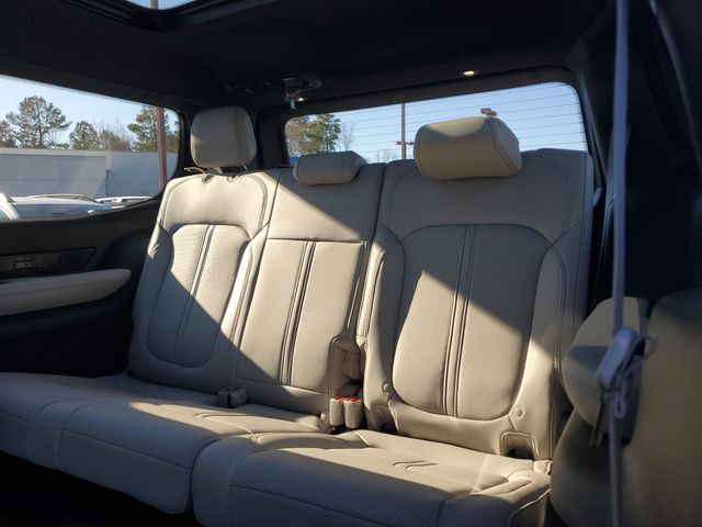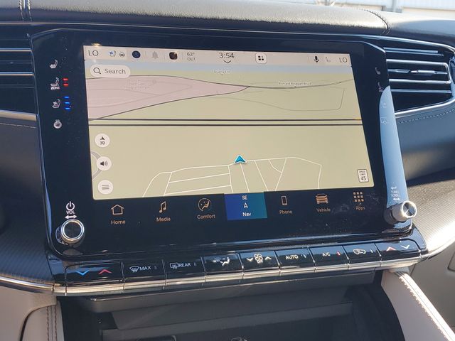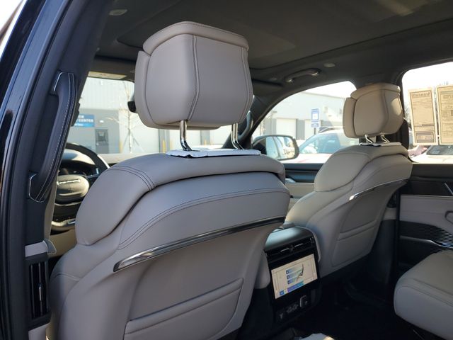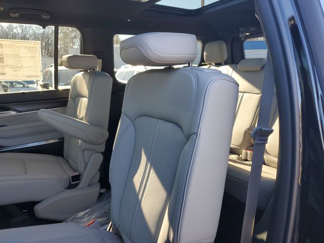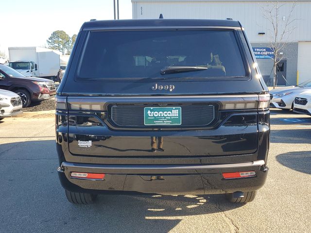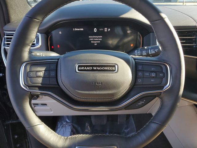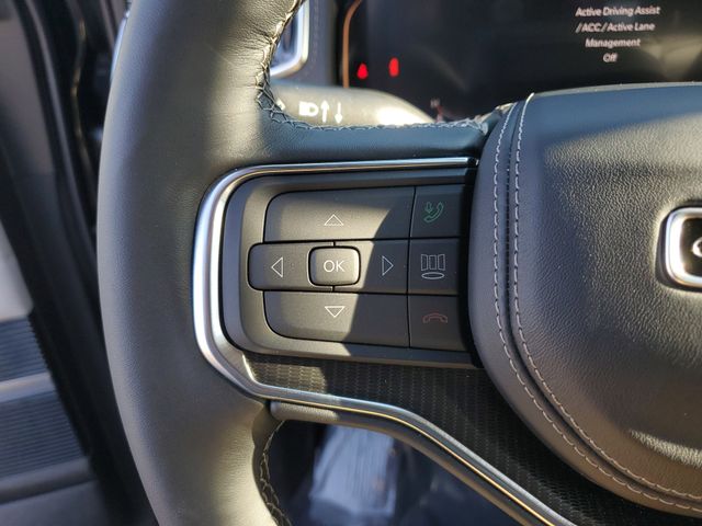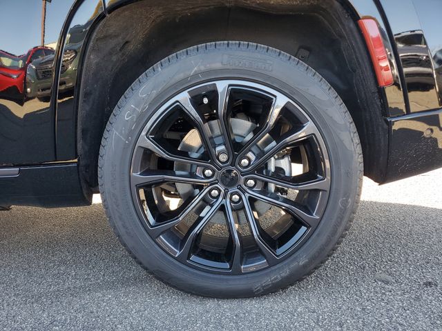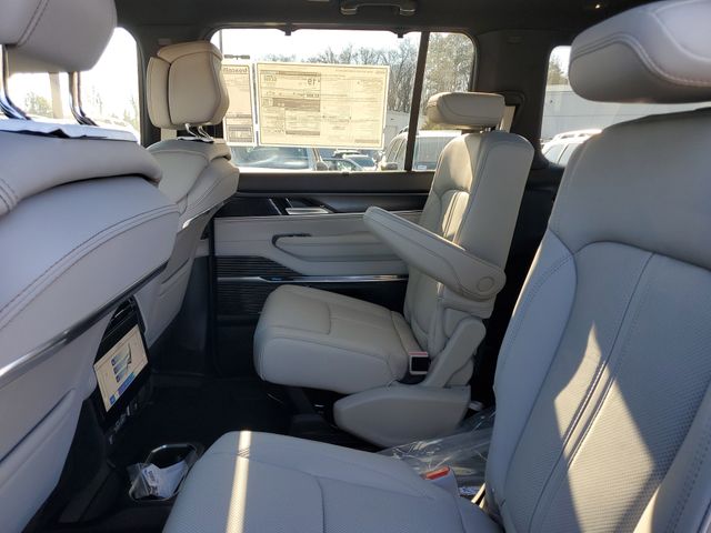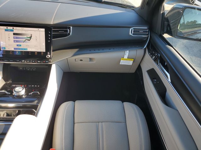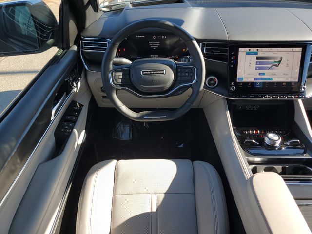Included features are Obsidian Appearance Package, Quick Order Package 29Z Obsidian (Black Chiseled Metal Interior Accent, Black Exterior Accents, Titanium Daylight Opening Upper, Titanium Upper Grille Applique, and Wheels: 22" x 9" Tinted Polished with Black Insert), Two Tone Paint Group, 118 Mph Maximum Speed Calibration, 19 Speakers, 3.55 Rear Axle Ratio, 3rd row seats: bench, 4-Wheel Disc Brakes, ABS brakes, Adaptive suspension, Air Conditioning, Alloy wheels, AM/FM radio: SiriusXM with 360L, Anti-whiplash front head restraints, Apple CarPlay/Android Auto, Audio memory, Auto Adjust in Reverse Exterior Mirrors, Auto High-beam Headlights, Auto-dimming door mirrors, Auto-Dimming Exterior Driver Mirror, Auto-dimming Rear-View mirror, Auto-leveling suspension, Automatic temperature control, Brake assist, Bumpers: body-color, Compass, Delay-off headlights, Driver door bin, Driver vanity mirror, Driver's Seat Mounted Armrest, Dual front impact airbags, Dual front side impact airbags, Electronic Stability Control, Emergency communication system: Jeep Connect, Exterior Mirrors Approach Lamps, Exterior Mirrors with Memory, Exterior Mirrors with Supplemental Signals, Exterior Parking Camera Rear, Four wheel independent suspension, Front anti-roll bar, Front Bucket Seats, Front Center Armrest w/Storage, Front dual zone A/C, Front fog lights, Front reading lights, Fully automatic headlights, Garage door transmitter, Heads-Up Display, Heated door mirrors, Heated Exterior Mirrors, Heated front seats, Heated rear seats, Heated steering wheel, Illuminated entry, Knee airbag, Leather steering wheel, Leather Trimmed Bucket Seats, Low tire pressure warning, Memory seat, Navigation System, Normal Duty Suspension, Occupant sensing airbag, Outside temperature display, Overhead airbag, Overhead console, Panic alarm, Passenger door bin, Passenger seat mounted armrest, Passenger vanity mirror, Power adjustable front head restraints, Power door mirrors, Power driver seat, Power Liftgate, Power moonroof, Power passenger seat, Power steering, Power windows, Radio data system, Radio: Uconnect 5 Nav with 12.0" Display, Rain sensing wipers, Rear air conditioning, Rear anti-roll bar, Rear dual zone A/C, Rear reading lights, Rear seat center armrest, Rear window defroster, Rear window wiper, Reclining 3rd row seat, Remote keyless entry, Security system, Speed control, Speed-sensing steering, Speed-Sensitive Wipers, Split folding rear seat, Steering wheel memory, Steering wheel mounted audio controls, Tachometer, Telescoping steering wheel, Tilt steering wheel, Traction control, Trip computer, Turn signal indicator mirrors, Variably intermittent wipers, Ventilated front seats, Ventilated rear seats, and Voltmeter. Price includes the following rebates:$1000 - 2026 National Stellantis Loyalty Bonus Cash . Exp. 04/30/2026 $500 - 2026 National 2026 Military Bonus Cash . Exp. 01/04/2027