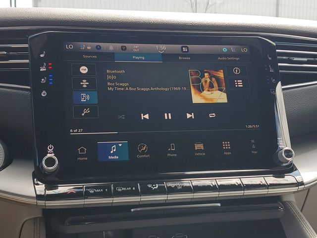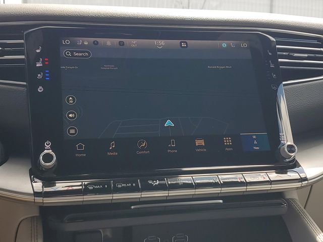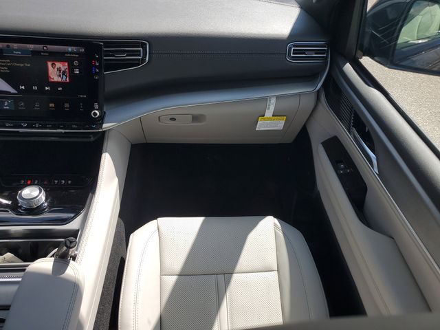 Step inside and be captivated by the Grand Wagoneer L's spacious and meticulously crafted interior. Sink into the plush, heated and ventilated front seats, and enjoy the convenience of the power-adjustable driver's seat with memory settings. The panoramic 3-panel sunroof floods the cabin with natural light, creating an airy and inviting atmosphere.