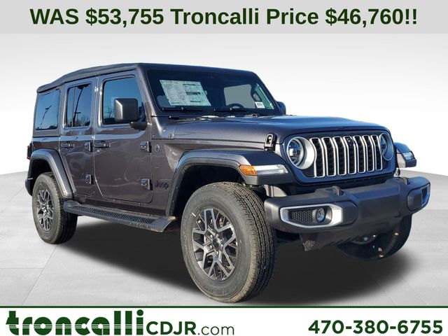 Included features are Quick Order Package 24G, Sahara Popular Equipment Group (12.3" Touchscreen Display, 4G LTE Wi-Fi Hot Spot, Alpine Premium Audio System, Apple CarPlay, Auto High Beam Headlamp Control, Auto-Dimming Rear-View Mirror, Blind Spot and Cross Path Detection, Connected Travel and Traffic Services, Connectivity - US/Canada, For More Info, Call 800-643-2112, Google Android Auto, GPS Navigation, Hard Seat Back, HD Radio, Integrated Center Stack Radio, Integrated Off-Road Camera, Integrated Voice Command with Bluetooth, Leather Wrapped Park Brake Handle, Leather Wrapped Shift Knob, McKinley Trimmed Seats, ParkSense Rear Park Assist System, Power 4-Way Driver Lumbar Adjust, Power 4-Way Passenger Lumbar Adjust, Power Adjust 8-Way Driver Seat, Power Adjust 8-Way Front Passenger Seat, Radio: Uconnect 5 Navigation with 12.3" Display, Side Steps, SiriusXM Radio Service, SiriusXM with 360L, and Universal Garage Door Opener), 3.45 Overall Top Gear Ratio, 4-Wheel Disc Brakes, 8 Speakers, ABS brakes, Air Conditioning, Alloy wheels, AM/FM radio: SiriusXM with 360L, Apple CarPlay/Android Auto, Automatic temperature control, Aux Battery, Brake assist, Cloth Low-Back Bucket Seats, Compass, Delay-off headlights, Driver door bin, Driver vanity mirror, Dual front impact airbags, Dual front side impact airbags, Electronic Stability Control, Emergency communication system: Jeep Connect, Front anti-roll bar, Front Bucket Seats, Front Center Armrest w/Storage, Front dual zone A/C, Front fog lights, Front reading lights, Fully automatic headlights, Heated door mirrors, Heated front seats, Heated steering wheel, Heavy Duty Suspension with Gas Shocks, Illuminated entry, Integrated roll-over protection, Low tire pressure warning, MOPAR All-Weather Floor Mats, Non-Lock Fuel Cap Without Discriminator, Occupant sensing airbag, Outside temperature display, Overhead airbag, Panic alarm, ParkView Rear Back-Up Camera, Passenger door bin, Passenger vanity mirror, Power door mirrors, Power steering, Power windows, Radio data system, Radio: Uconnect 5 with 12.3" Display, Rear anti-roll bar, Rear reading lights, Remote keyless entry, Security system, Speed control, Split folding rear seat, Steering wheel mounted audio controls, Stop-Start Dual Battery System, Tachometer, Telescoping steering wheel, Tilt steering wheel, Traction control, Trip computer, Variably intermittent wipers, Voltmeter, and Wheels: 18" x 7.5" Machine/Painted Gray. Price includes the following rebates:$1000 - 2026 National Retail Bonus Cash . Exp. 04/30/2026 $1000 - 2026 National Stellantis Loyalty Bonus Cash . Exp. 04/30/2026 $500 - 2026 National 2026 Military Bonus Cash . Exp. 01/04/2027
