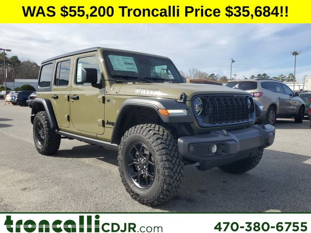 Pj5 2026 Jeep Wrangler Willys Willys 4WD Price includes the following rebates:$1500 - 2026 National Select Inventory Bonus Cash . Exp. 01/05/2026 $1500 - 2026 National Stellantis Loyalty Retail Bonus Cash . Exp. 01/05/2026