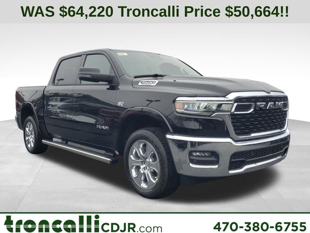 Included features are Big Horn Level 2 Equipment Group (115V Auxiliary Power Outlet, 115V Auxiliary Rear Power Outlet, 12" Touchscreen Display, 2nd Row in Floor Storage Bins, 3 Rear Seat Head Restraints, 4 Way Front Headrests, 400W Inverter, 4G LTE Wi-Fi Hot Spot, 9 Amplified Speakers with Subwoofer, Air Conditioning ATC with Dual Zone Control, Apple CarPlay, Auto Power-Folding Mirrors, Auto-Dimming Exterior Driver Mirror, Auto-Dimming Rear-View Mirror, Black Exterior Mirrors, Black Premium Power Mirrors, Body Color Fender Flares, Bucket Seats, Center Console Parts Module, Cluster 7.0" TFT Color Display, Configurable Drive Mode, Connected Travel and Traffic Services, Connectivity - US/Canada, Convex Wide-Angle Exterior Mirror Insert, Deluxe Cloth Bucket Seats, Disassociated Touchscreen Display, Exterior Mirrors Courtesy Lamps, Exterior Mirrors with Heating Element, Exterior Mirrors with Supplemental Signals, Front Seat Back Map Pockets, Full Length Floor Console, Global Telematics Box Module, Glove Box Lamp, Google Android Auto, GPS Antenna Input, GPS Navigation, HD Radio, Heated Front Seats, Heated Steering Wheel, Integrated Center Stack Radio, Integrated Voice Command with Bluetooth, Leather Wrapped Steering Wheel, LED Dome Lamp with on/Off Switch, LED Footwell Lighting, Manual Adjust 4-Way Front Passenger Seat, Media Hub with 2 Charge Only USBs, Overhead LED Lamps, Power 2-Way Driver Lumbar Adjust, Power Adjust 8-Way Driver Seat, Power Adjustable Pedals, Premium Overhead Console, Radio: Uconnect 5 Navigation with 12.0" Display, Rear 60/40 Folding Seat, Rear Center Armrest, Rear Power Sliding Window, Rear Window Defroster, Remote Tailgate Release, Security Alarm, SiriusXM Radio Service, SiriusXM with 360L, Steering Wheel Mounted Audio Controls, Sun Visors with Illuminated Vanity Mirrors, Universal Garage Door Opener, USB Host Flip, and Wheels: 20" x 9" Aluminum Chrome Clad), Quick Order Package 23Z Big Horn, Quick Order Package 27Z Big Horn, 4-Wheel Disc Brakes, 48V Belt Starter Generator, 6 Speakers, ABS brakes, Air Conditioning, Alloy wheels, AM/FM radio, Anti-Spin Differential Rear Axle, Apple CarPlay/Android Auto, Auto High-beam Headlights, Brake assist, Bumpers: chrome, Cloth Bucket Seats, Compass, Delay-off headlights, Driver door bin, Dual front impact airbags, Dual front side impact airbags, Electronic Stability Control, Front anti-roll bar, Front Bucket Seats, Front Center Armrest w/Storage, Front fog lights, Front reading lights, Front wheel independent suspension, Fully automatic headlights, Heated door mirrors, Illuminated entry, Low tire pressure warning, Manual Adjust 4-Way Driver Seat, Manual Folding Exterior Mirrors, Occupant sensing airbag, Outside temperature display, Overhead airbag, Overhead console, Panic alarm, ParkView Rear Back-Up Camera, Passenger door bin, Passenger vanity mirror, Power door mirrors, Power steering, Power windows, Radio data system, Radio: Uconnect 5 W with 8.4" Display, RAM Grille Badge - Chrome, Rear anti-roll bar, Rear step bumper, Remote keyless entry, Speed control, Supplier Part Tracking (J-1), Tachometer, Telescoping steering wheel, Tilt steering wheel, Traction control, Trailer Brake Control, Trip computer, Variably intermittent wipers, and Voltmeter. Price includes the following rebates:$1000 - 2026 Southeast BC Retail Bonus Cash. Exp. 04/30/2026 $2000 - 2026 National SFS Lease Loyalty Bonus Cash . Exp. 04/30/2026 $3500 - 2026 National Retail Bonus Cash . Exp. 04/30/2026 $500 - 2026 National 2026 Military Bonus Cash . Exp. 01/04/2027 $500 - 2026 Southeast BC Retail Bonus Cash. Exp. 04/30/2026