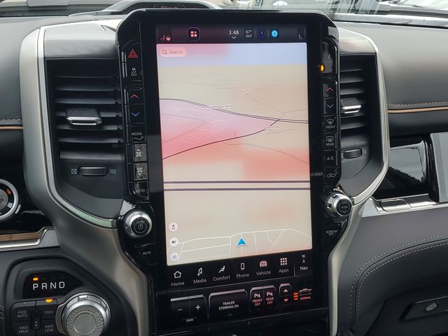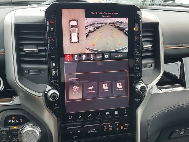 Included features are Bed Utility Group (Exterior 115V AC Outlet, MOPAR 4 Adjustable Cargo Tie-Down Hooks, and Truck Bed Cargo Divider), Quick Order Package 22V Tungsten, Trailer Tow Group (Trailer Brake Control, Trailer Light Check, Trailer Reverse Steering Control, and Trailer Tire Pressure Monitoring System), 12-Way/1-Way Trailer Connector, 3.92 Rear Axle Ratio, 4-Wheel Disc Brakes, ABS brakes, Adjustable pedals, Air Conditioning, Alloy wheels, AM/FM radio, Apple CarPlay/Android Auto, Audio memory, Auto High-beam Headlights, Auto Power-Folding Mirrors, Auto-dimming door mirrors, Auto-Dimming Exterior Driver Mirror, Auto-dimming Rear-View mirror, Auto-leveling suspension, Automatic temperature control, Bodyside moldings, Brake assist, Bumpers: body-color, Chrome Exterior Mirrors, Compass, Delay-off headlights, Driver door bin, Driver vanity mirror, Dual front impact airbags, Dual front side impact airbags, Electronic Stability Control, Exterior Mirrors Courtesy Lamps, Exterior Mirrors with Heating Element, Exterior Mirrors with Memory, Exterior Mirrors with Supplemental Signals, Exterior Parking Camera Rear, Front anti-roll bar, Front Bucket Seats, Front Center Armrest w/Storage, Front dual zone A/C, Front fog lights, Front reading lights, Front wheel independent suspension, Fully automatic headlights, Garage door transmitter, Heads-Up Display, Heated door mirrors, Heated front seats, Heated rear seats, Heated steering wheel, Illuminated entry, Leather steering wheel, Low tire pressure warning, Memory seat, Navigation System, Occupant sensing airbag, Outside temperature display, Overhead airbag, Overhead console, Panic alarm, Passenger door bin, Passenger vanity mirror, Pedal memory, Power adjustable front head restraints, Power door mirrors, Power driver seat, Power moonroof, Power passenger seat, Power steering, Power windows, Premium Leather Bucket Seats, Radio data system, Radio: Uconnect 5 Nav with 14.4" Display, Rain sensing wipers, Rear anti-roll bar, Rear reading lights, Rear seat center armrest, Rear step bumper, Rear window defroster, Remote keyless entry, Security system, Speed control, Split folding rear seat, Steering wheel mounted audio controls, Tachometer, Telescoping steering wheel, Tilt steering wheel, Traction control, Trip computer, Turn signal indicator mirrors, Variably intermittent wipers, Ventilated front seats, Ventilated rear seats, Voltmeter, and Wheels: 22" x 9" Polish/Painted with Inserts. Price includes the following rebates:$2000 - 2026 National SFS Lease Loyalty Bonus Cash . Exp. 04/30/2026 $500 - 2026 National 2026 Military Bonus Cash . Exp. 01/04/2027
