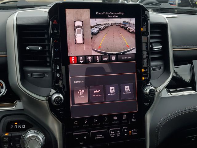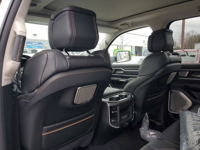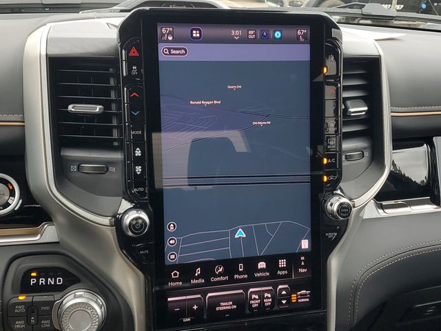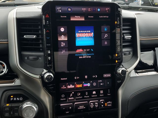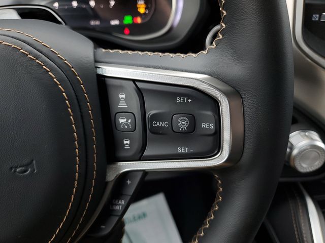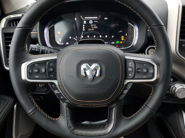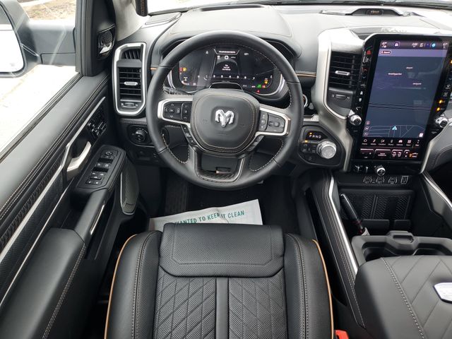 Included features are Bed Utility Group (Exterior 115V AC Outlet, MOPAR 4 Adjustable Cargo Tie-Down Hooks, and Truck Bed Cargo Divider), Quick Order Package 22V Tungsten, Trailer Tow Group (Trailer Brake Control, Trailer Light Check, Trailer Reverse Steering Control, and Trailer Tire Pressure Monitoring System), 12-Way/1-Way Trailer Connector, 3.92 Rear Axle Ratio, 4-Wheel Disc Brakes, ABS brakes, Adjustable pedals, Air Conditioning, Alloy wheels, AM/FM radio, Apple CarPlay/Android Auto, Audio memory, Auto High-beam Headlights, Auto Power-Folding Mirrors, Auto-dimming door mirrors, Auto-Dimming Exterior Driver Mirror, Auto-dimming Rear-View mirror, Auto-leveling suspension, Automatic temperature control, Bodyside moldings, Brake assist, Bumpers: body-color, Chrome Exterior Mirrors, Compass, Delay-off headlights, Driver door bin, Driver vanity mirror, Dual front impact airbags, Dual front side impact airbags, Electronic Stability Control, Exterior Mirrors Courtesy Lamps, Exterior Mirrors with Heating Element, Exterior Mirrors with Memory, Exterior Mirrors with Supplemental Signals, Exterior Parking Camera Rear, Front anti-roll bar, Front Bucket Seats, Front Center Armrest w/Storage, Front dual zone A/C, Front fog lights, Front reading lights, Front wheel independent suspension, Fully automatic headlights, Garage door transmitter, Heads-Up Display, Heated door mirrors, Heated front seats, Heated rear seats, Heated steering wheel, Illuminated entry, Leather steering wheel, Low tire pressure warning, Memory seat, Multi-Function Tailgate, Navigation System, Occupant sensing airbag, Outside temperature display, Overhead airbag, Overhead console, Panic alarm, Passenger door bin, Passenger vanity mirror, Pedal memory, Power adjustable front head restraints, Power door mirrors, Power driver seat, Power moonroof, Power passenger seat, Power steering, Power windows, Premium Leather Bucket Seats, Radio data system, Radio: Uconnect 5 Nav with 14.4" Display, Rain sensing wipers, RAM's Head Badge, Rear anti-roll bar, Rear reading lights, Rear seat center armrest, Rear step bumper, Rear window defroster, Remote keyless entry, Remote Tailgate Release, Security system, Speed control, Split folding rear seat, Steering wheel mounted audio controls, Tachometer, Telescoping steering wheel, Tilt steering wheel, Traction control, Trip computer, Turn signal indicator mirrors, Variably intermittent wipers, Ventilated front seats, Ventilated rear seats, Voltmeter, and Wheels: 22" x 9" Polish/Painted with Inserts. Price includes the following rebates:$1000 - 2026 National Bonus Cash . Exp. 03/31/2026 $2000 - 2026 National SFS Lease Loyalty Bonus Cash . Exp. 03/31/2026 $500 - 2026 National 2026 Military Bonus Cash . Exp. 01/04/2027