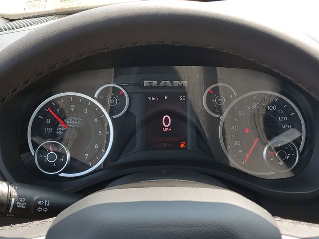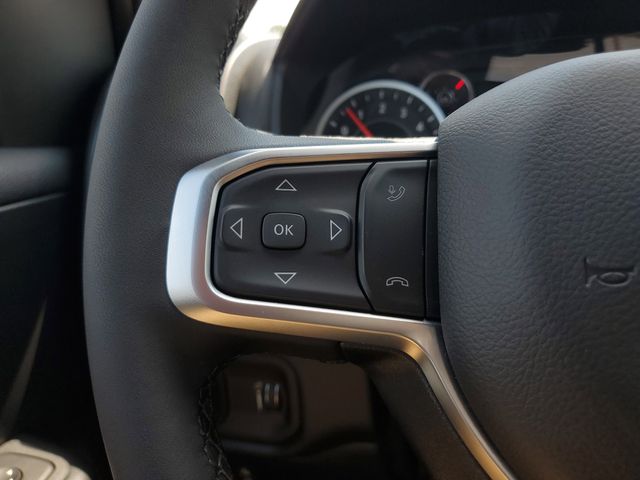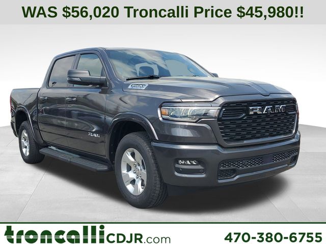 Included features are Big Horn Level 1 Equipment Group (115V Auxiliary Power Outlet, 2nd Row in Floor Storage Bins, 3 Rear Seat Head Restraints, 4 Way Front Headrests, 400W Inverter, Auto Power-Folding Mirrors, Auto-Dimming Exterior Driver Mirror, Auto-Dimming Rear-View Mirror, Black Exterior Mirrors, Black Premium Power Mirrors, Body Color Fender Flares, Bucket Seats, Center Console Parts Module, Convex Wide-Angle Exterior Mirror Insert, Deluxe Cloth Bucket Seats, Exterior Mirrors Courtesy Lamps, Exterior Mirrors with Heating Element, Exterior Mirrors with Supplemental Signals, Front Seat Back Map Pockets, Full Length Floor Console, Glove Box Lamp, Heated Front Seats, Heated Steering Wheel, Leather Wrapped Steering Wheel, Manual Adjust 4-Way Front Passenger Seat, Power 2-Way Driver Lumbar Adjust, Power Adjust 8-Way Driver Seat, Power Adjustable Pedals, Rear 60/40 Folding Seat, Rear Center Armrest, Rear Dome with on/Off Switch Lamp, Rear Power Sliding Window, Rear Window Defroster, SiriusXM Radio Service, SiriusXM Satellite Radio, Steering Wheel Mounted Audio Controls, Sun Visors with Illuminated Vanity Mirrors, and Universal Garage Door Opener), Quick Order Package 23Z Big Horn, Sport Appearance Package (Black Interior Accents, Body Color Door Handles, Body Color Front Bumper, Body Color Rear Bumper with Step Pads, Body Color Tailgate Handle, Grille Surround 1 Body Color Texture 1 Black, and RAM Grille Badge - Chrome), 3.21 Rear Axle Ratio, 4-Wheel Disc Brakes, 48V Belt Starter Generator, 4G LTE Wi-Fi Hot Spot, 6 Speakers, ABS brakes, Air Conditioning, Alloy wheels, AM/FM radio, Apple CarPlay, Apple CarPlay/Android Auto, Auto High-beam Headlights, Brake assist, Bumpers: chrome, Cloth Bucket Seats, Compass, Connectivity - US/Canada, Delay-off headlights, Driver door bin, Dual front impact airbags, Dual front side impact airbags, Electronic Stability Control, Exterior Parking Camera Rear, Front anti-roll bar, Front Bucket Seats, Front Center Armrest w/Storage, Front fog lights, Front reading lights, Front wheel independent suspension, Fully automatic headlights, Global Telematics Box Module, Google Android Auto, GPS Antenna Input, Heated door mirrors, Illuminated entry, Integrated Center Stack Radio, Integrated Voice Command with Bluetooth, Low tire pressure warning, Manual Adjust 4-Way Driver Seat, Manual Folding Exterior Mirrors, Occupant sensing airbag, Outside temperature display, Overhead airbag, Overhead console, Panic alarm, Passenger door bin, Passenger vanity mirror, Power door mirrors, Power steering, Power windows, Radio data system, Radio: Uconnect 5 W with 8.4" Display, Rear anti-roll bar, Rear step bumper, Remote keyless entry, Speed control, Supplier Part Tracking (J-1), Tachometer, Telescoping steering wheel, Tilt steering wheel, Traction control, Trip computer, USB Host Flip, Variably intermittent wipers, Voltmeter, and Wheels: 18" x 8" Cast-Aluminum Painted. Price includes the following rebates:$1000 - 2026 Southeast BC Retail Bonus Cash. Exp. 04/30/2026 $3500 - 2026 National Retail Bonus Cash . Exp. 04/30/2026 $500 - 2026 National 2026 Military Bonus Cash . Exp. 01/04/2027 $500 - 2026 Southeast BC Retail Bonus Cash. Exp. 04/30/2026