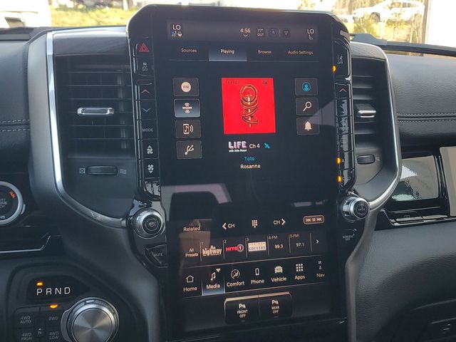 Included features are Laramie Level 2 Equipment Group (14.4" Touchscreen Display, 4G LTE Wi-Fi Hot Spot, Cluster 12" TFT Color Display, Connected Travel and Traffic Services, Connectivity - US/Canada, Front Passenger Interactive Display, GPS Navigation, Harman/Kardon 19 Speaker Premium Sound, Integrated Center Stack Radio, Integrated Voice Command with Bluetooth, Power Tailgate, Radio: Uconnect 5 Nav with 14.4" Display, Rain Sensitive Windshield Wipers, SiriusXM Radio Service, SiriusXM with 360L, and USB Host Flip), Night Edition (Accent Color Door Handles, Accent Color Premium Power Mirrors, Accent Color Tailgate Handle, Anti-Spin Differential Rear Axle, Auto Power-Folding Mirrors, Auto-Dimming Exterior Driver Mirror, Black Exterior Truck Badging, Black Headlamp Bezels, Black Interior Accents, Black Painted Exterior Mirrors Caps, Black Tail Lamp Bezels, Body Color Front Bumper, Body Color Rear Bumper with Step Pads, Convex Wide-Angle Exterior Mirror Insert, Dual Exhaust with Black Tips, Exterior Mirrors Approach Lamps, Exterior Mirrors Courtesy Lamps, Exterior Mirrors with Heating Element, Exterior Mirrors with Memory, Exterior Mirrors with Supplemental Signals, Grille Surround 3 Black Texture 2 Black, Pirelli Brand Tires, Proximity Approach/Departure Lamps, RAM Grille Badge - Black, Sport Performance Hood, and Wheels: 22" x 9" Forged Aluminum), Quick Order Package 27H Laramie, 10 Speakers, 4-Wheel Disc Brakes, ABS brakes, Active Noise Control System, Adjustable pedals, Air Conditioning, Alloy wheels, AM/FM radio: SiriusXM with 360L, Apple CarPlay/Android Auto, Audio memory, Auto High-beam Headlights, Auto-dimming door mirrors, Auto-dimming Rear-View mirror, Automatic temperature control, Brake assist, Bumpers: chrome, Chrome Exterior Mirrors, Compass, Delay-off headlights, Driver door bin, Driver vanity mirror, Dual front impact airbags, Dual front side impact airbags, Electronic Stability Control, Front anti-roll bar, Front Bucket Seats, Front Center Armrest w/Storage, Front dual zone A/C, Front fog lights, Front reading lights, Front wheel independent suspension, Fully automatic headlights, Garage door transmitter, Heated door mirrors, Heated front seats, Heated rear seats, Heated steering wheel, Illuminated entry, Leather steering wheel, Leather Trimmed Bucket Seats, Low tire pressure warning, Manufacturer's Statement of Origin, Memory seat, MOPAR Front and Rear Rubber Floor Mats, Navigation System, Occupant sensing airbag, Off-Road Information Pages, Outside temperature display, Overhead airbag, Overhead console, Panic alarm, ParkView Rear Back-Up Camera, Passenger door bin, Passenger vanity mirror, Pedal memory, Power door mirrors, Power driver seat, Power passenger seat, Power steering, Power windows, Radio data system, Radio: Uconnect 5 Navigation with 12.0" Display, RAM Grille Badge - Chrome, Rear anti-roll bar, Rear reading lights, Rear seat center armrest, Rear step bumper, Remote keyless entry, Security system, Speed control, Split folding rear seat, Steering wheel mounted audio controls, Tachometer, Telescoping steering wheel, Tilt steering wheel, Traction control, Trip computer, Turn signal indicator mirrors, Variably intermittent wipers, Ventilated front seats, Voltmeter, and Wheels: 20" x 9" Premium Paint/Polish. Price includes the following rebates:$2000 - 2026 National SFS Lease Loyalty Bonus Cash . Exp. 04/30/2026 $3500 - 2026 National Retail Bonus Cash . Exp. 04/30/2026 $500 - 2026 National 2026 Military Bonus Cash . Exp. 01/04/2027