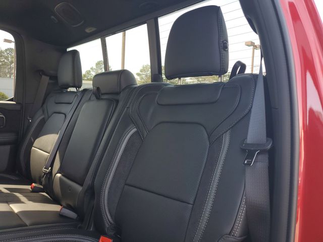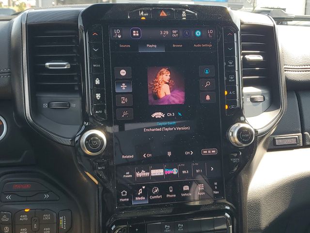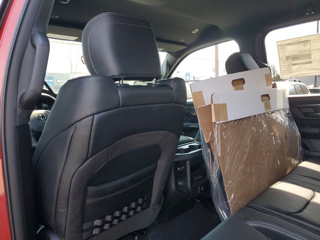 Included features are Bed Utility Group (Exterior 115V AC Outlet, MOPAR 4 Adjustable Cargo Tie-Down Hooks, and MOPAR Deployable Bed Step), Quick Order Package 22Y RHO, 10 Speakers, 3.92 Rear Axle Ratio, 4-Wheel Disc Brakes, 4G LTE Wi-Fi Hot Spot, ABS brakes, Adaptive suspension, Adjustable pedals, Air Conditioning, Alloy wheels, AM/FM radio, Apple CarPlay/Android Auto, Auto High-beam Headlights, Auto Power-Folding Mirrors, Auto-dimming door mirrors, Auto-Dimming Exterior Driver Mirror, Auto-dimming Rear-View mirror, Automatic temperature control, Brake assist, Compass, Connected Travel and Traffic Services, Connectivity - US/Canada, Delay-off headlights, Disassociated Touchscreen Display, Driver door bin, Driver vanity mirror, Dual front impact airbags, Dual front side impact airbags, Electronic Stability Control, Exterior Mirrors Courtesy Lamps, Exterior Mirrors with Heating Element, Exterior Mirrors with Supplemental Signals, Exterior Parking Camera Rear, Flareside Box, Front anti-roll bar, Front Bucket Seats, Front Center Armrest w/Storage, Front dual zone A/C, Front fog lights, Front reading lights, Front wheel independent suspension, Fully automatic headlights, Garage door transmitter, GPS Navigation, HD Radio, Heated door mirrors, Heated front seats, Heated steering wheel, Illuminated entry, Integrated Center Stack Radio, Integrated Voice Command with Bluetooth, Leather Shift Knob, Leather steering wheel, Leather Trimmed Bucket Seats, Low tire pressure warning, Navigation System, Occupant sensing airbag, Outside temperature display, Overhead airbag, Overhead console, Panic alarm, Passenger door bin, Passenger vanity mirror, Power door mirrors, Power driver seat, Power passenger seat, Power steering, Power windows, Radio data system, Radio: Uconnect 5 Navigation with 12.0" Display, Rear reading lights, Rear seat center armrest, Rear step bumper, Rear window defroster, Remote keyless entry, Security system, SiriusXM Radio Service, Speed control, Split folding rear seat, Sport steering wheel, Steering wheel mounted audio controls, Tachometer, Telescoping steering wheel, Tilt steering wheel, Traction control, Trip computer, Turn signal indicator mirrors, USB Host Flip, Variably intermittent wipers, Voltmeter, and Wheels: 18" x 9" Black Paint/Polish Aluminum. Price includes the following rebates:$500 - 2026 National 2026 Military Bonus Cash . Exp. 01/04/2027