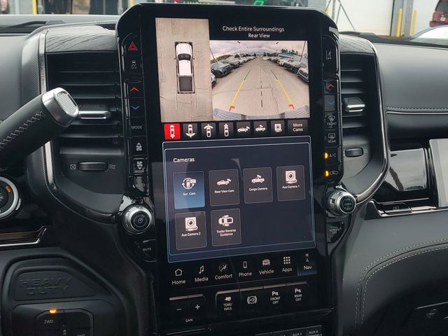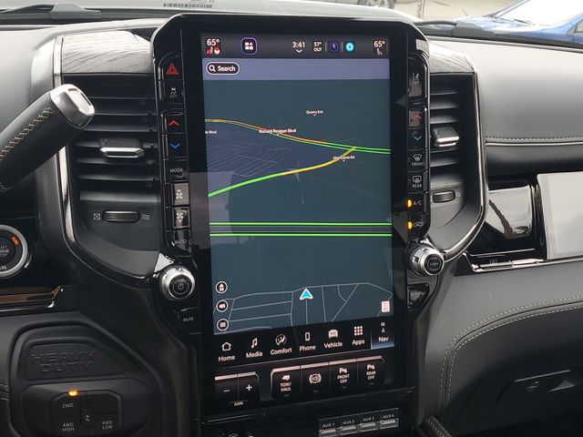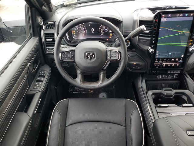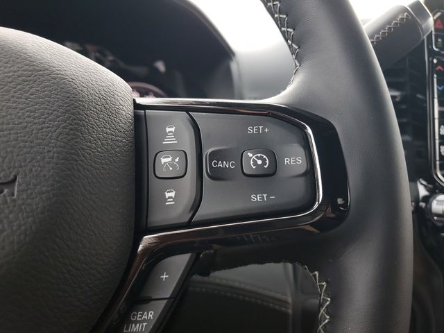 Included features are Limited Level 1 Equipment Group (Active Lane Management System, Adaptive Steering System, Anti-Spin Differential Rear Axle, Center Stop Lamp with Cargo View Camera, Digital Rearview Mirror, Drowsy Driver Detection, LED Bed Lighting, MOPAR Spray in Bedliner, MOPAR Trailer Camera Wiring with No Camera, Power Deployable Running Boards, Surround View Camera System, Traffic Sign Recognition, Trailer Reverse Guidance, and Trailer Tire Pressure Monitoring System), Night Edition (Black Exterior Truck Badging, Black Grille Limited, Black Interior Accents, Black Wheel Center Hub, Body Color Grille-Surround, Sport Performance Hood, and Wheels: 20" x 8.0" Night Edition Black Aluminum), Quick Order Package 24M Limited, Quick Order Package 2UM Limited, 17 Speakers, 4-Wheel Disc Brakes, 5th Wheel/Gooseneck Towing Prep Group, ABS brakes, Adjustable pedals, Air Conditioning, Alloy wheels, AM/FM radio: SiriusXM with 360L, Apple CarPlay/Android Auto, Audio memory, Auto High-beam Headlights, Auto-dimming door mirrors, Auto-dimming Rear-View mirror, Automatic temperature control, Bodyside moldings, Brake assist, Bumpers: body-color, Clearance Lamps, Compass, Dash Pass Thru Wire Circuits, Delay-off headlights, Driver door bin, Driver vanity mirror, Dual front impact airbags, Dual front side impact airbags, Electronic Stability Control, Front anti-roll bar, Front Bucket Seats, Front Center Armrest w/Storage, Front dual zone A/C, Front fog lights, Front reading lights, Front Seat Back Map Pockets, Fully automatic headlights, Garage door transmitter, Genuine wood console insert, Genuine wood dashboard insert, Genuine wood door panel insert, harman/kardon® Speakers, Heated door mirrors, Heated front seats, Heated rear seats, Heated steering wheel, Illuminated entry, Instrument Panel Mounted Auxiliary Switches, Leather steering wheel, Low tire pressure warning, Memory seat, Navigation System, Occupant sensing airbag, Outside temperature display, Overhead airbag, Overhead console, Panic alarm, ParkView Rear Back-Up Camera, Passenger door bin, Passenger vanity mirror, Pedal memory, Pickup Box, Power door mirrors, Power driver seat, Power passenger seat, Power steering, Power Sunroof, Power windows, Radio data system, Radio: Uconnect 5 Nav with 14.4" Display, Rain sensing wipers, Rear anti-roll bar, Rear reading lights, Rear seat center armrest, Rear step bumper, Rear window defroster, Remote keyless entry, Security system, Speed control, Split folding rear seat, Steering wheel mounted audio controls, Tachometer, Tilt steering wheel, Traction control, Trip computer, Turn signal indicator mirrors, Ultra Premium Leather Seats, Variably intermittent wipers, Vendor Painted Cargo Box, Vendor Painted Cargo Box Tracking, Ventilated Front Seats, Ventilated front seats, Voltmeter, and Wheels: 20" x 8.0" Diamond Cut Aluminum with Black Pt Pockets. Price includes the following rebates:$1000 - 2026 National Bonus Cash . Exp. 03/31/2026 $500 - 2026 National 2026 Military Bonus Cash . Exp. 01/04/2027