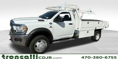 Included features are 4 Speakers, 4-Wheel Disc Brakes, 4.44 Axle Ratio, 40/20/40 Split Bench Seat, 4G LTE Wi-Fi Hot Spot, ABS brakes, Air Conditioning, AM/FM radio: SiriusXM, Apple CarPlay, Apple CarPlay/Android Auto, Black Exterior Mirrors, Compass, Connectivity - US/Canada, Delay-off headlights, Driver door bin, Dual front impact airbags, Dual rear wheels, Electronic Stability Control, Emergency communication system: RAM Connect, For Details, Visit DriveUconnect.com, Front anti-roll bar, Front Armrest with Cupholders, Front Center Armrest w/Storage, Front fog lights, Front reading lights, Fully automatic headlights, Global Telematics Box Module, Google Android Auto, GPS Antenna Input, Integrated Voice Command with Bluetooth, Manual Adjust 4-Way Driver Seat, Manual Adjust 4-Way Front Passenger Seat, Manual Folding Exterior Mirrors, Manual Telescoping Mirrors, Occupant sensing airbag, Outside temperature display, Overhead console, Passenger door bin, Passenger vanity mirror, Power steering, Power Take-Off Right/Left, Radio data system, Radio: Uconnect 5 with 8.4" Display, Rear anti-roll bar, Remote USB Port - Charge Only, Speed control, Tachometer, Temperature and Compass Gauge, Tilt steering wheel, Traction control, Variably intermittent wipers, Voltmeter, and Wheels: 19.5" x 6.0" Black Painted SteeL. Price includes the following rebates:$2500 - 2026 National Bonus Cash . Exp. 04/30/2026 $500 - 2026 National 2026 Military Bonus Cash . Exp. 01/04/2027