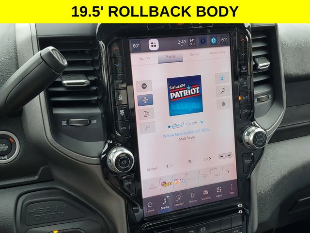 Included features are Chrome Appearance Group (19.5" x 6.0" Steel Wheels, Bright Front Bumper, Center Hub, Chrome Grille Surround, and Matte Black Mesh with Chrome Grille), Cold Weather Group (Engine Block Heater and MOPAR Winter Front Grille Cover), Quick Order Package 25A Tradesman, Tradesman Level 2 Equipment Group (115V Auxiliary Power Outlet, 12.0" Touchscreen Display, 400W Inverter, 4G LTE Wi-Fi Hot Spot, Air Conditioning ATC with Dual Zone Control, Alexa Built-in, Apple CarPlay, Black Exterior Mirrors, Black Power Heated Fold Telescope Mirrors, Connected Travel and Traffic Services, Connectivity - US/Canada, Digital Rearview Mirror, Disassociated Touchscreen Display, Exterior Mirrors Courtesy Lamps, Exterior Mirrors with Heating Element, Exterior Mirrors with Supplemental Signals, For Details, Visit DriveUconnect.com, For More Info, Call 800-643-2112, Front 1-Touch Down Power Windows, Global Telematics Box Module, Google Android Auto, GPS Antenna Input, GPS Navigation, HD Radio, Integrated Voice Command with Bluetooth, Manual Folding Exterior Mirrors, Manual Telescoping Mirrors, Mirror Running Lights, Off-Road Info Pages, Power Adjust Mirrors, Power-Adjustable Convex Aux Mirrors, Radio: Uconnect 5 Navigation with 12.0" Display, Remote Keyless Entry, Remote Start System, SiriusXM Radio Service, SiriusXM with 360L, Speed Sensitive Power Locks, Temperature and Compass Gauge, Tinted Acoustic Windshield Glass, Trailer Brake Control, Trailer Light Check, Trailer Tow Pages, and Upgraded Door Trim Panel), 4 Speakers, 4-Wheel Disc Brakes, 4.44 Axle Ratio, 40/20/40 Split Bench Seat, ABS brakes, Air Conditioning, AM/FM radio: SiriusXM, Apple CarPlay/Android Auto, Cargo and CHMSL Lamp, Compass, Delay-off headlights, Driver door bin, Dual front impact airbags, Dual rear wheels, Electronic Stability Control, Emergency communication system: RAM Connect, Front anti-roll bar, Front Armrest with Cupholders, Front Center Armrest w/Storage, Front fog lights, Front License Plate Bracket, Front reading lights, Fully automatic headlights, Manual Adjust 4-Way Driver Seat, Manual Adjust 4-Way Front Passenger Seat, Occupant sensing airbag, Outside temperature display, Overhead console, ParkView Rear Back-Up Camera, Passenger door bin, Passenger vanity mirror, Power 2-Way Driver Lumbar Adjust, Power steering, Power Take-Off Right/Left, Radio data system, Radio: Uconnect 5 with 8.4" Display, Rear anti-roll bar, Rear Backup Alarm, Remote USB Port - Charge Only, Speed control, Tachometer, Tilt steering wheel, Traction control, Variably intermittent wipers, Voltmeter, Wheels: 19.5" x 6.0" Black Painted Steel, and Wheels: 19.5" x 6.0" Forged Aluminum PolisheD. Price includes the following rebates:$2500 - 2026 National Bonus Cash . Exp. 04/30/2026 $500 - 2026 National 2026 Military Bonus Cash . Exp. 01/04/2027