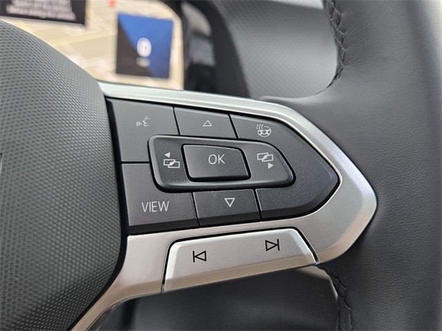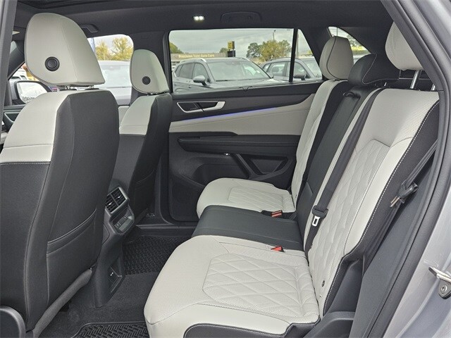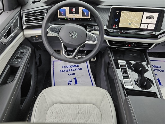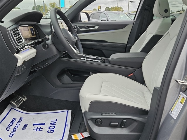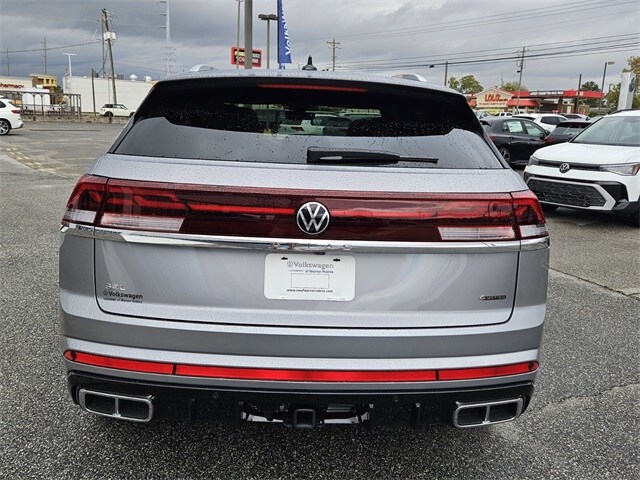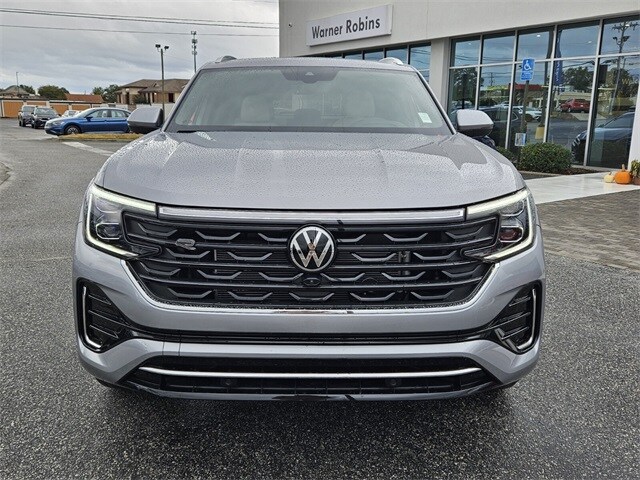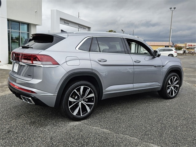 Silver Mist 2025 Volkswagen Atlas Cross Sport 2.0T SEL Premium R-Line AWD 8-Speed Automatic with Tiptronic 2.0L TSI 4-Wheel Disc Brakes, 4-Wheel Independent Suspension, 6 Speakers, ABS brakes, Air Conditioning, Alloy wheels, AM/FM radio: SiriusXM with 360L, Auto High-beam Headlights, Auto-dimming Rear-View mirror, Automatic temperature control, Brake assist, Bumpers: body-color, Compass, Delay-off headlights, Driver door bin, Driver vanity mirror, Dual front impact airbags, Dual front side impact airbags, Electronic Stability Control, Emergency communication system: VW Car-Net Safe & Secure 5-year, Exterior Parking Camera Rear, Four wheel independent suspension, Front anti-roll bar, Front Bucket Seats, Front Center Armrest, Front dual zone A/C, Front fog lights, Front reading lights, Fully automatic headlights, harman/kardon® Speakers, Heads-Up Display, Heated & Actively Ventilated Front Seats, Heated door mirrors, Heated front seats, Heated rear seats, Heated steering wheel, Illuminated entry, Leather steering wheel, Low tire pressure warning, Memory seat, Navigation System, Occupant sensing airbag, Outside temperature display, Overhead airbag, Overhead console, Panic alarm, Passenger door bin, Passenger vanity mirror, Perforated Vienna Leather Seating Surfaces, Power door mirrors, Power driver seat, Power Liftgate, Power moonroof: Panoramic, Power passenger seat, Power steering, Power windows, Radio data system, Radio: MIB3 Discover Pro Navigation AM/FM/HD, Rain sensing wipers, Rear anti-roll bar, Rear audio controls, Rear reading lights, Rear seat center armrest, Rear window defroster, Rear window wiper, Remote keyless entry, Security system, Speed control, Speed-sensing steering, Split folding rear seat, Spoiler, Sport steering wheel, Steering wheel mounted audio controls, Tachometer, Telescoping steering wheel, Tilt steering wheel, Traction control, Trip computer, Turn signal indicator mirrors, Variably intermittent wipers, Ventilated front seats, Wheels: 21" 2-Tone Machined Alloy.