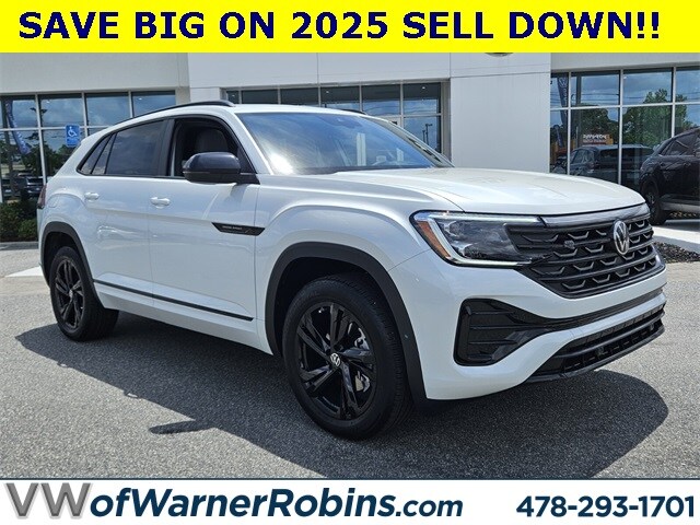 Opal White 2025 Volkswagen Atlas Cross Sport 2.0T SEL R-Line Black AWD 8-Speed Automatic with Tiptronic 2.0L TSI 4-Wheel Disc Brakes, 4-Wheel Independent Suspension, 6 Speakers, ABS brakes, Air Conditioning, Alloy wheels, AM/FM radio: SiriusXM with 360L, Auto High-beam Headlights, Auto-dimming Rear-View mirror, Automatic temperature control, Brake assist, Bumpers: body-color, Compass, Delay-off headlights, Driver door bin, Driver vanity mirror, Dual front impact airbags, Dual front side impact airbags, Electronic Stability Control, Emergency communication system: VW Car-Net Safe & Secure 5-year, Exterior Parking Camera Rear, Four wheel independent suspension, Front anti-roll bar, Front Bucket Seats, Front Center Armrest, Front dual zone A/C, Front fog lights, Front reading lights, Fully automatic headlights, Heads-Up Display, Heated & Actively Ventilated Front Seats, Heated door mirrors, Heated front seats, Heated rear seats, Heated steering wheel, Illuminated entry, Low tire pressure warning, Memory seat, Navigation System, Occupant sensing airbag, Outside temperature display, Overhead airbag, Overhead console, Panic alarm, Passenger door bin, Passenger vanity mirror, Perforated Vienna Leather Seating Surfaces, Power door mirrors, Power driver seat, Power Liftgate, Power moonroof: Panoramic, Power passenger seat, Power steering, Power windows, Radio data system, Radio: MIB3 Discover Pro Navigation AM/FM/HD, Rain sensing wipers, Rear anti-roll bar, Rear reading lights, Rear seat center armrest, Rear window defroster, Rear window wiper, Remote keyless entry, Security system, Speed control, Speed-sensing steering, Split folding rear seat, Spoiler, Steering wheel mounted audio controls, Tachometer, Telescoping steering wheel, Tilt steering wheel, Traction control, Trip computer, Turn signal indicator mirrors, Variably intermittent wipers, Ventilated front seats, Wheels: 20" Black Painted Alloy.
