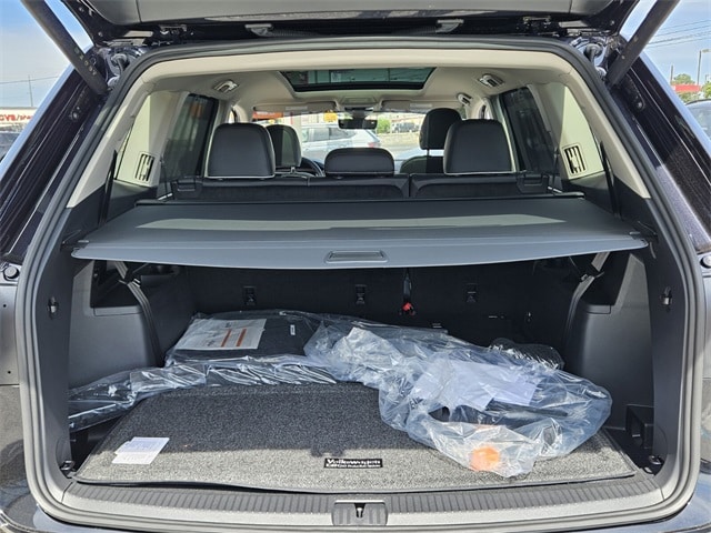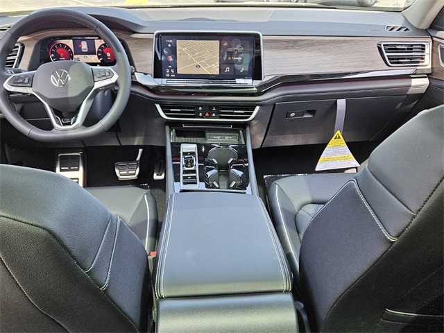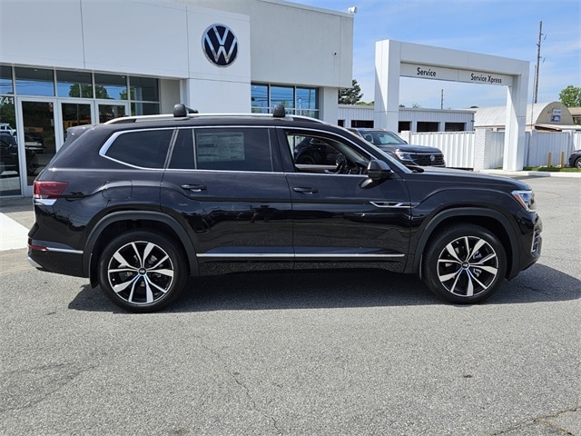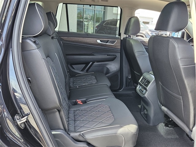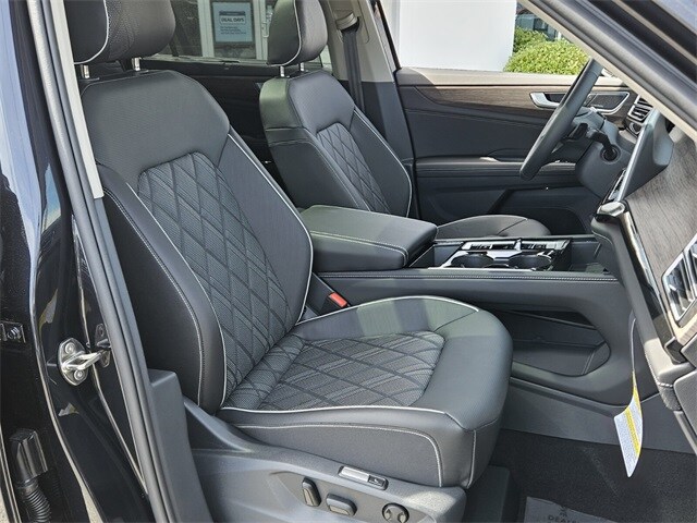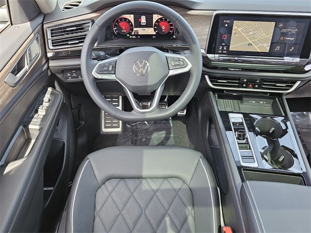 Deep Black Pearl 2025 Volkswagen Atlas 2.0T SEL Premium R-Line AWD 8-Speed Automatic 2.0L TSI 10 Speakers, 3rd row seats: split-bench, 4-Wheel Disc Brakes, ABS brakes, Air Conditioning, Alloy wheels, AM/FM radio: SiriusXM with 360L, Auto High-beam Headlights, Auto-dimming Rear-View mirror, Automatic temperature control, Brake assist, Bumpers: body-color, Compass, Delay-off headlights, Driver door bin, Driver vanity mirror, Dual front impact airbags, Dual front side impact airbags, Electronic Stability Control, Emergency communication system: VW Car-Net Safe & Secure 5-year, Exterior Parking Camera Rear, Four wheel independent suspension, Front anti-roll bar, Front Bucket Seats, Front Center Armrest, Front dual zone A/C, Front fog lights, Front reading lights, Fully automatic headlights, harman/kardon® Speakers, Heads-Up Display, Heated door mirrors, Heated front seats, Heated rear seats, Heated steering wheel, Illuminated entry, Leather steering wheel, Low tire pressure warning, Memory seat, Navigation System, Occupant sensing airbag, Outside temperature display, Overhead airbag, Overhead console, Panic alarm, Passenger door bin, Passenger vanity mirror, Power door mirrors, Power driver seat, Power Liftgate, Power moonroof: Panoramic, Power passenger seat, Power steering, Power windows, Radio data system, Rain sensing wipers, Rear air conditioning, Rear anti-roll bar, Rear audio controls, Rear reading lights, Rear seat center armrest, Rear window defroster, Rear window wiper, Remote keyless entry, Security system, Speed control, Speed-sensing steering, Split folding rear seat, Spoiler, Sport steering wheel, Steering wheel mounted audio controls, Tachometer, Telescoping steering wheel, Tilt steering wheel, Traction control, Trip computer, Turn signal indicator mirrors, Variably intermittent wipers, Ventilated front seats.
