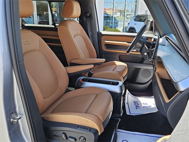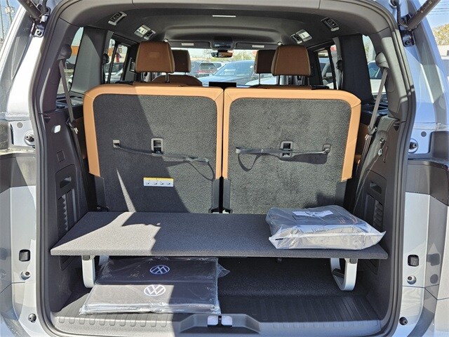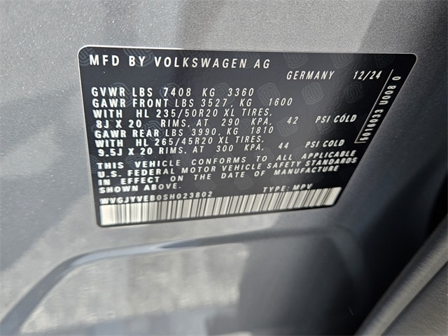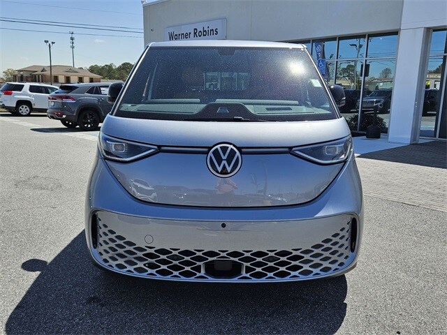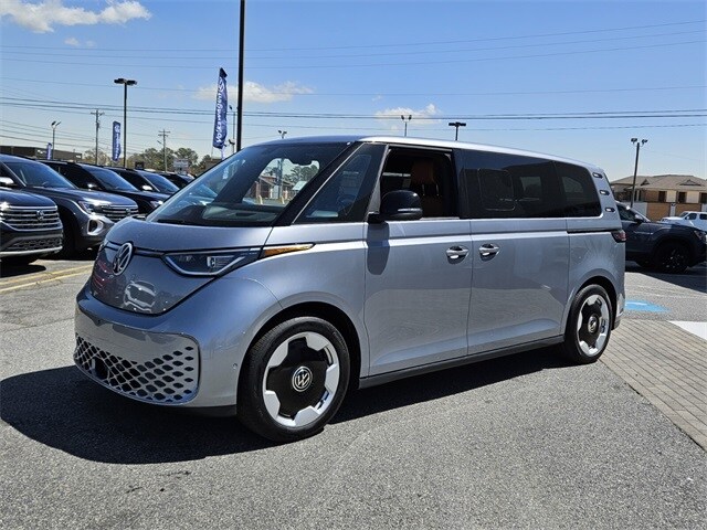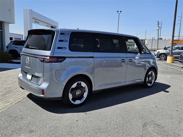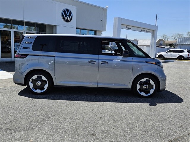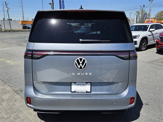 Metro Silver Metallic 2025 Volkswagen ID. Buzz Pro S Plus AWD Single-Speed Automatic Electric Motor 14 Speakers, 3rd row seats: split-bench, ABS brakes, Air Conditioning, Alloy wheels, Auto High-beam Headlights, Auto-dimming Rear-View mirror, Automatic temperature control, Brake assist, Bumpers: body-color, Delay-off headlights, Driver door bin, Driver vanity mirror, Driver's Seat Mounted Armrest, Dual front impact airbags, Dual front side impact airbags, Electronic Stability Control, Emergency communication system: VW Car-Net Safe & Secure 5-year, Exterior Parking Camera Rear, Four wheel independent suspension, Front anti-roll bar, Front Bucket Seats, Front dual zone A/C, Front fog lights, Front reading lights, Fully automatic headlights, harman/kardon® Speakers, Heads-Up Display, Heated & Actively Ventilated Front Seats, Heated door mirrors, Heated front seats, Heated rear seats, Heated steering wheel, Illuminated entry, Leather steering wheel, Low tire pressure warning, Memory seat, Navigation System, Occupant sensing airbag, Outside temperature display, Overhead airbag, Panic alarm, Passenger door bin, Passenger seat mounted armrest, Passenger vanity mirror, Perforated V-Tex Leatherette Seating Surfaces, Power door mirrors, Power driver seat, Power Liftgate, Power passenger seat, Power steering, Power windows, Radio data system, Radio: Discover Pro Max w/Touchscreen Navigation, Rain sensing wipers, Rear air conditioning, Rear anti-roll bar, Rear reading lights, Rear window defroster, Rear window wiper, Remote keyless entry, Speed control, Speed-sensing steering, Split folding rear seat, Spoiler, Steering wheel mounted audio controls, TBD Axle Ratio, Telescoping steering wheel, Tilt steering wheel, Traction control, Trip computer, Turn signal indicator mirrors, Variably intermittent wipers, Ventilated front seats, Wheels: 20" Two-Tone Disc Alloy.
